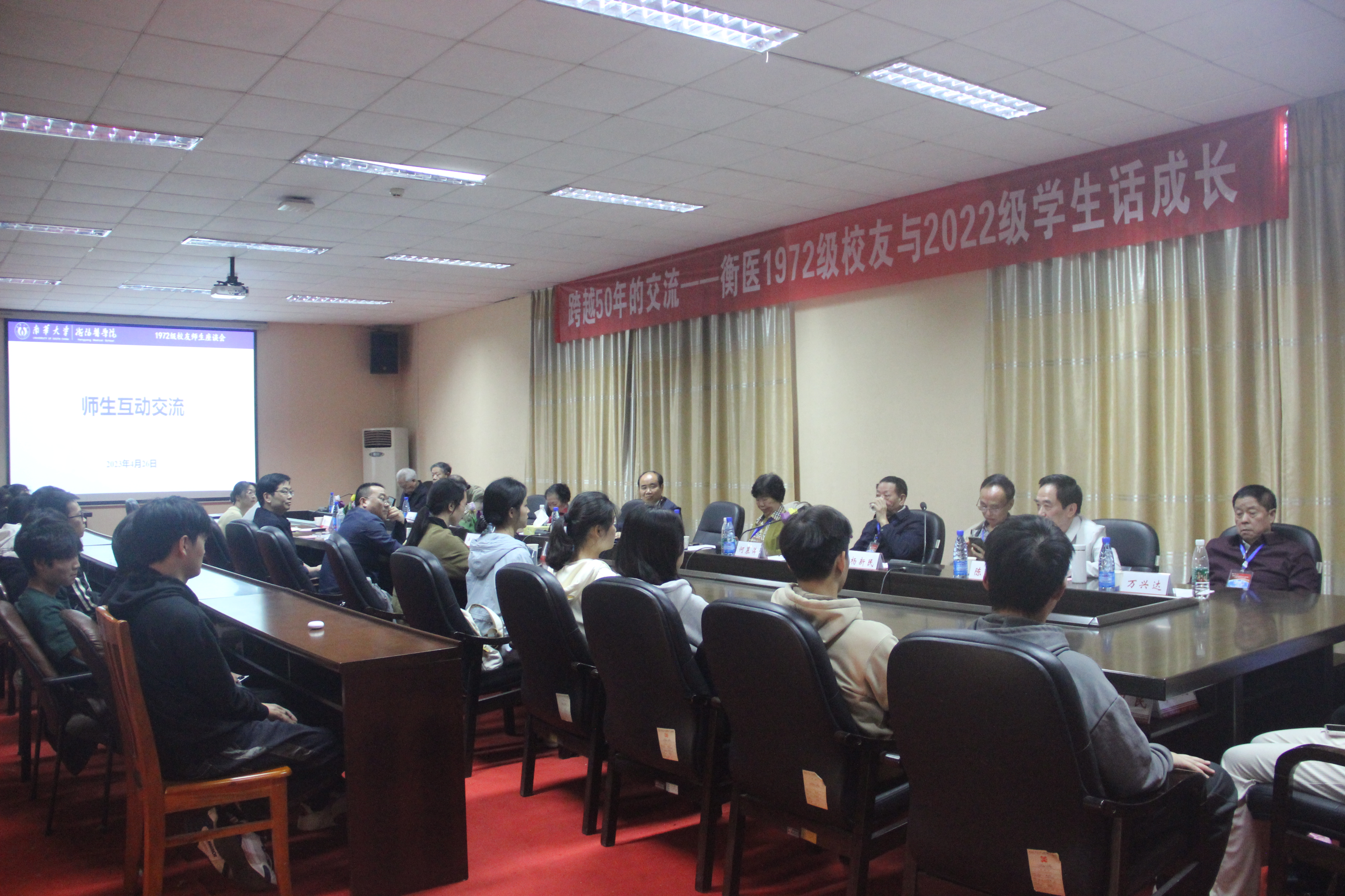 衡阳医学院党委书记曾国,校团委副书记禹敏,衡阳医学院党委副书记卢清华,2022级辅导员周玲、王雅嘉,1972级校友代表刘运初、李斌元、刘凤英、李红、何慕舜、王定龙、杨新民、何月光、陈美科、刘伯文、万兴达等11人及tyc7111cc太阳成2022级40名学生代表共同参加了座谈会。会议由曾国主持。