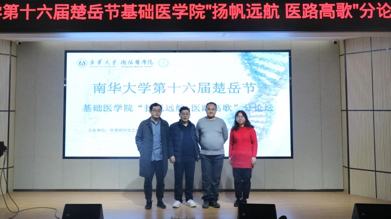 12月7日晚,太阳成tyc7111cc集团第十六届楚岳节tyc7111cc太阳成分论坛学术讲座报告活动在医研楼一楼报告厅举办。本次活动邀请了tyc7111cc太阳成副院长张晓东和2021-2022年度研究生国家奖学金获得者唐伟强、孟星圻作主题讲座,衡阳医学院党委副书记卢清华、副院长王震、研究生辅导员李红颖参加会议。衡阳医学院全体研究生(包括4个医科学院和各附属医院研究生培养单位)通过“线上+线下”形式共700余人参会。会议由学生王昭月主持。