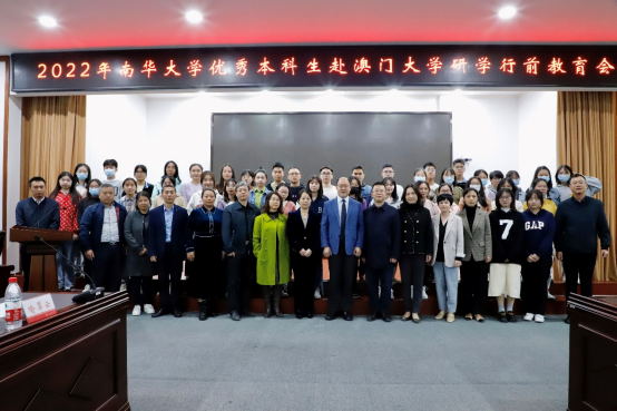 王福俤在讲话中指出,本次选拔优秀医学本科生赴澳门研学,是学校第一次大规模组织师生团组出境研学,是学校对外合作交流的一件大事。学校将以此为契机,进一步加强国际教育交流,开阔学生国际视野,逐步面向全校所有专业,提供跟多前往世界名校研学的机会。他希望参加此次研学的同学珍惜研学机会,服从团组管理,严格要求自己,互相帮助,高效研学,时刻牢记南华人身份,展现南华人良好风采,确保研学活动圆满成功。