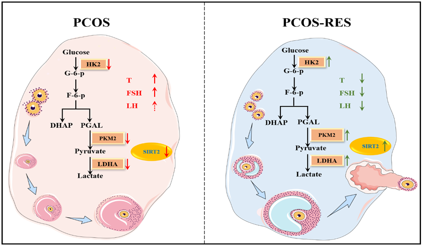PCOS是女性常见的内分泌代谢紊乱性疾病,临床症状多表现为高雄激素血症、高胰岛素血症、卵巢多囊样改变、月经稀发、无排卵等,是女性不孕的重要原因之一,由其导致的卵泡发育障碍占排卵障碍性不孕的比例高达75%。目前,关于PCOS卵泡发育障碍的机制尚不明确。