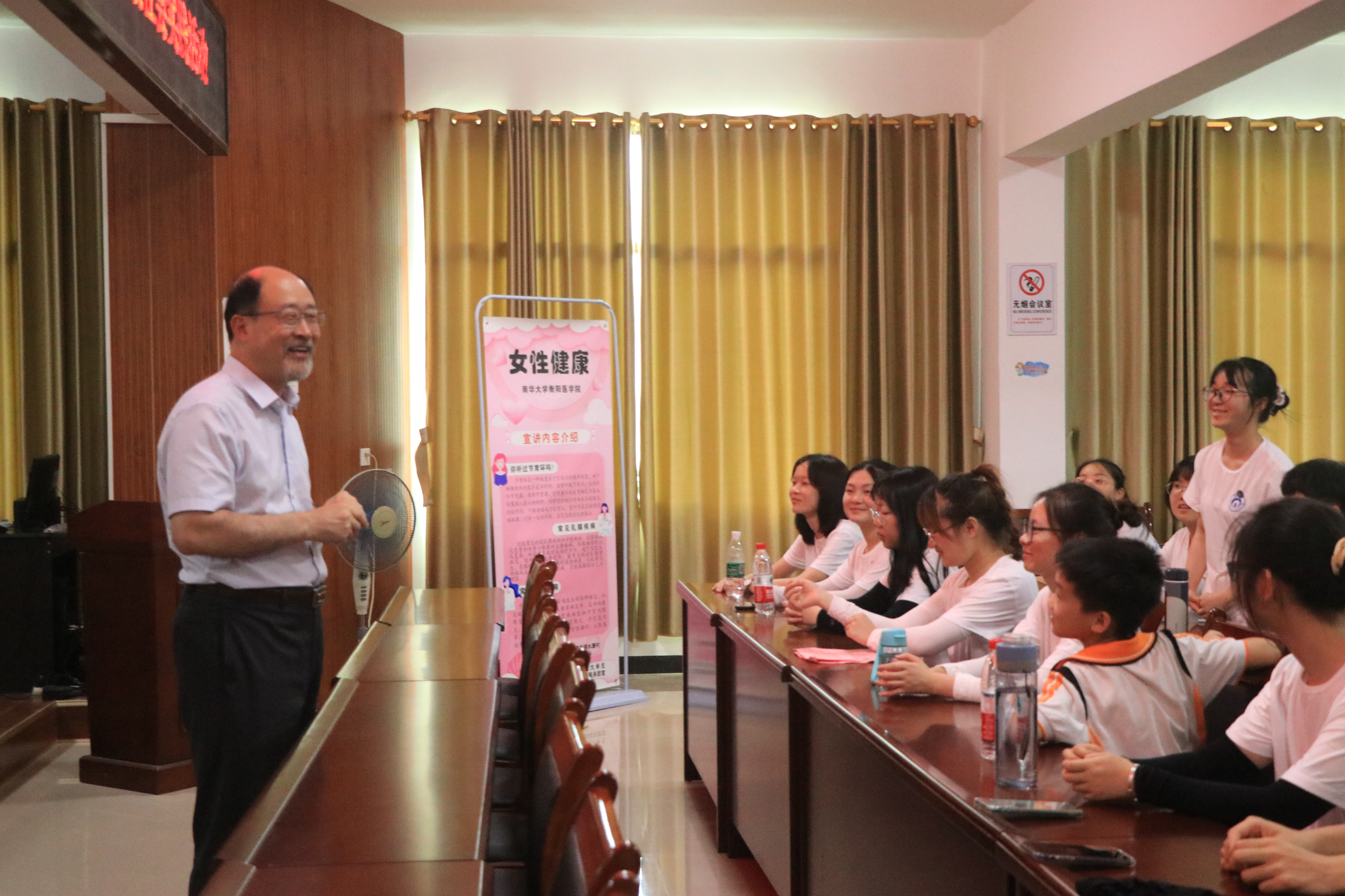 在活动现场,王福俤亲切与实践服务团成员进行交流,听取了服务团成员关于实践活动进展的报告,同时对活动后期的开展进行了指导,并对同学们积极深入基层开展三下乡社会实践活动给予了充分肯定。他强调,服务团要将“共建健康中国,助力乡村振兴”暑期社会实践活动各项内容落到实处,提升活动质量,做出活动效果。随后,王福俤与队员们分享了自己的奋斗历程,勉励队员们要铭记初心、砥砺奋进,在实践中服务社会、获取真知、点亮青春。