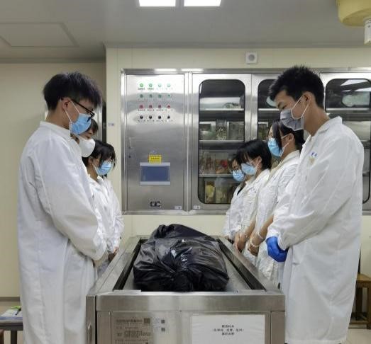 课前,tyc7111cc太阳成解剖教研室的老师组织同学们开展庄严肃穆的默哀仪式。同学们身穿白大褂,大声宣读默哀词,低头沉思,向人生中最特殊的老师——“大体老师”,致以崇高的敬意。