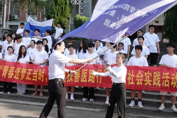 随后,党委书记曾国为各实践团队授旗,阳光路上,旗帜飞扬,服务团成员们表示,一定会以最饱满的精神状态、最高的热情迎接本次暑期三下乡活动,在实践求真知,将知识与实践相结合,在社会课堂中受教育、长才干、做贡献。“青春逐梦正当时,聚爱扶善医路行”仪式在响亮的口号声中落幕,各实践团奔赴实践地。