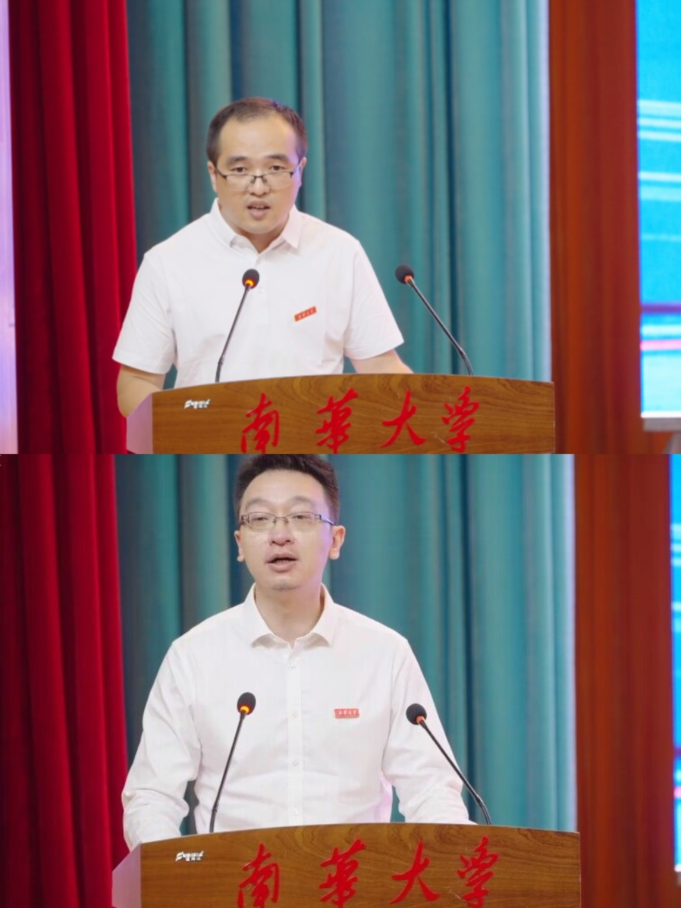 接下来是学院教师代表发言,第一位发言的是湖南省杰青、湖湘英才获得者伍代朝教授,他向新生们提供了三点宝贵建议:一、在挫败中成长,不惧困难,勇战困难;二、敢于质疑权威与传统,善于发现前辈的局限,激发新思想;三、培养仁爱之心,为人民生命健康保驾护航。第二位发言的是湖南省教书育人楷模(提名奖)、全国工人先锋号获得者南华临床学院钟哲峰,他寄语广大衡医新生:“在学医这条路上,同学们务必铭记初心,从前辈身上汲取经验与力量。与此同时,恪守医道,坚持从医品格应是医务人员时刻放在心上的标尺,希望你们要分清有所为与有所不为。”