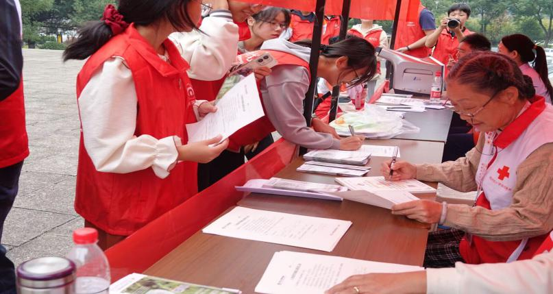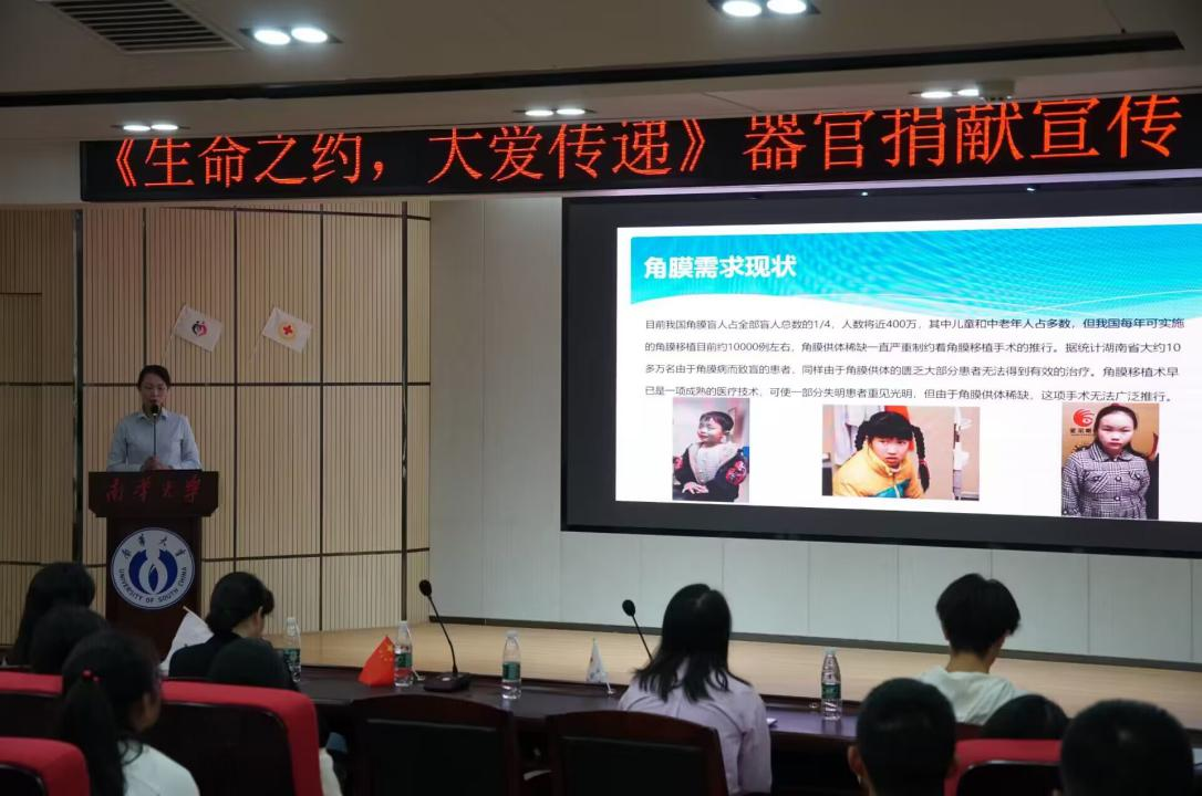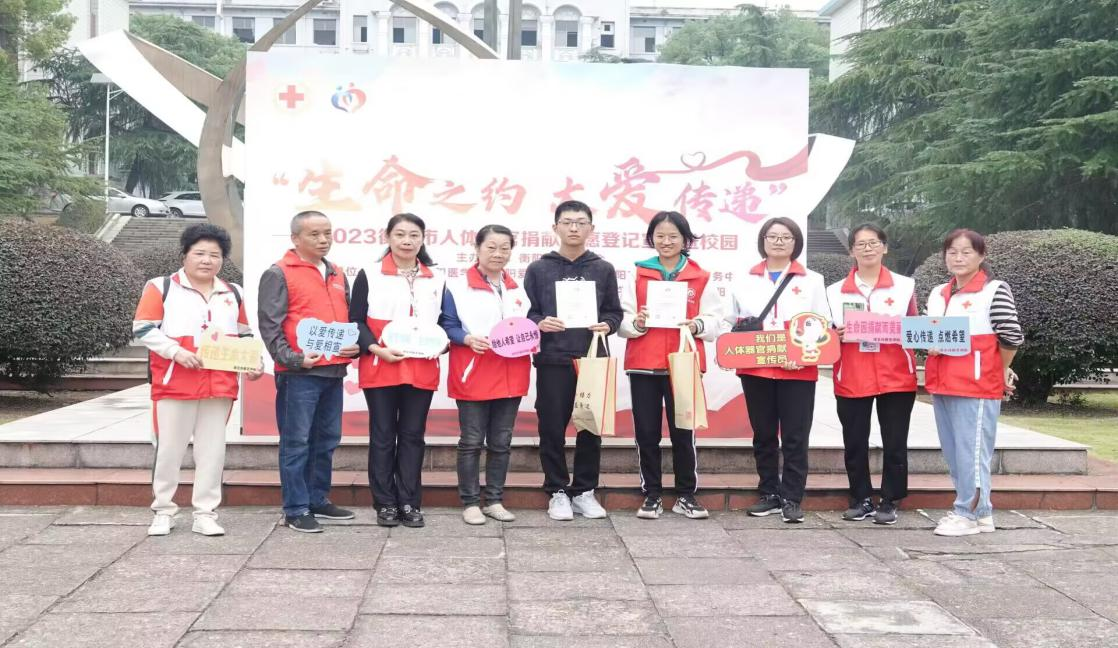 2023年10月14日上午,衡阳市人体捐献登记志愿宣传活动在太阳成tyc7111cc集团放飞广场与医学院医研楼顺利举行。本次活动由衡阳红十字会主办,太阳成tyc7111cc集团衡阳医学院、衡阳爱尔眼科医院、衡阳市红十字会志愿服务中心承办,蒸湘区红十字会、太阳成tyc7111cc集团附属第二医院、太阳成tyc7111cc集团衡阳医学院一路阳光协会协办,衡阳市红十字会常务副会长周晴、蒸湘区红十字会会长周海清、太阳成tyc7111cc集团衡阳医学院副院长周洲,太阳成tyc7111cc集团附属第二医院捐献办公室毛宇、太阳成tyc7111cc集团衡阳医学院器官捐献工作小组姚婕、衡阳爱尔眼科医院陈芸娟、衡阳市红十字志愿服务中心吕艳、太阳成tyc7111cc集团衡阳医学院医路阳光协会会长吴俊诚出席,部分衡阳医学院学生参与,现场大约200余人参加本次活动。本次活动分为室内与室外两个部分,室内活动由陈芸娟主持。