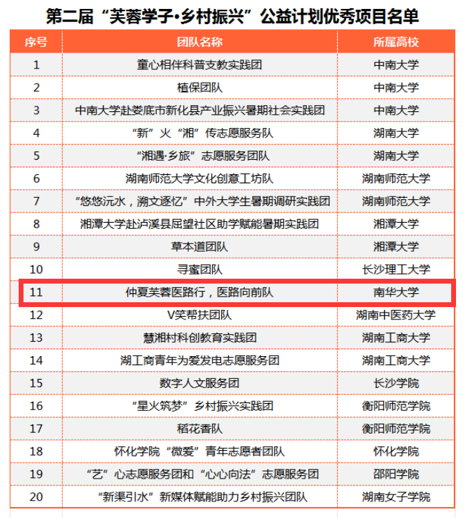 自第二届“芙蓉学子·乡村振兴”公益计划公布以来,王楚楚团队从队员的组建、资料收集、申请书撰写做了大量工作,周密筹划、准备,经过团队成员共同努力终于成功申报。从活动项目申报开始,学院从人、财、物等方面给予大力支持,院党委书记曾国、副书记卢清华、团委书记廖敏参加活动出征仪式,并对活动过程进行全程指导,在大家齐心协力下历经3个月活动的实施和总结,活动终于取得圆满成功。