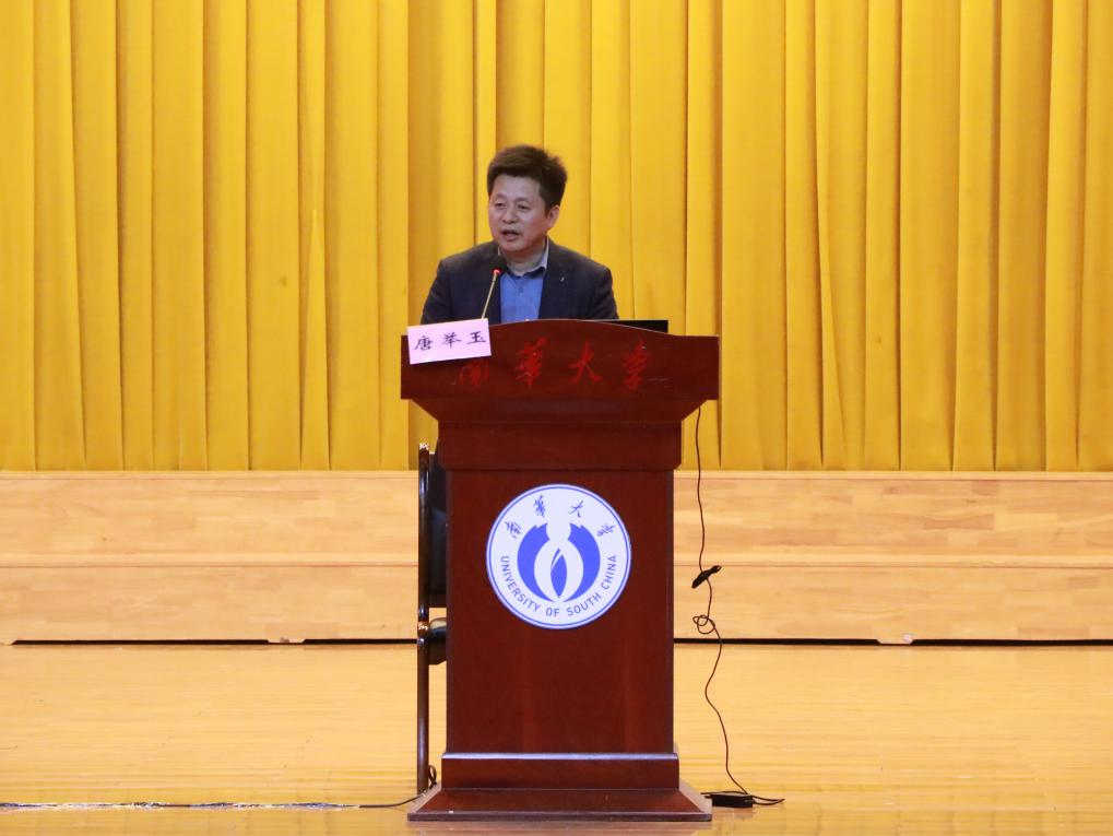 为加强学院学风建设,提升学生专业学习兴趣和能力,11月5日晚上,衡阳医学院在南华礼堂邀请中南大学湘雅医院唐举玉教授来校举行解剖学讲座。衡阳医学院党委书记曾国,学院人体形态实验中心和人体解剖学教研室老师,2023级辅导员,学院解剖兴趣小组成员、23级新生约250余人参与了本次活动。本次活动分为知识分享与有奖竞答、教授讲座、经验分享以及解剖小组解说几个环节,线上线下同步进行,由周楷杰,张欣然主持。在活动开始之前,会场内的大屏幕上播放着与解剖学相关的视频,帮助2023级的衡阳医学院同学们初步揭开解剖学神秘的面纱。