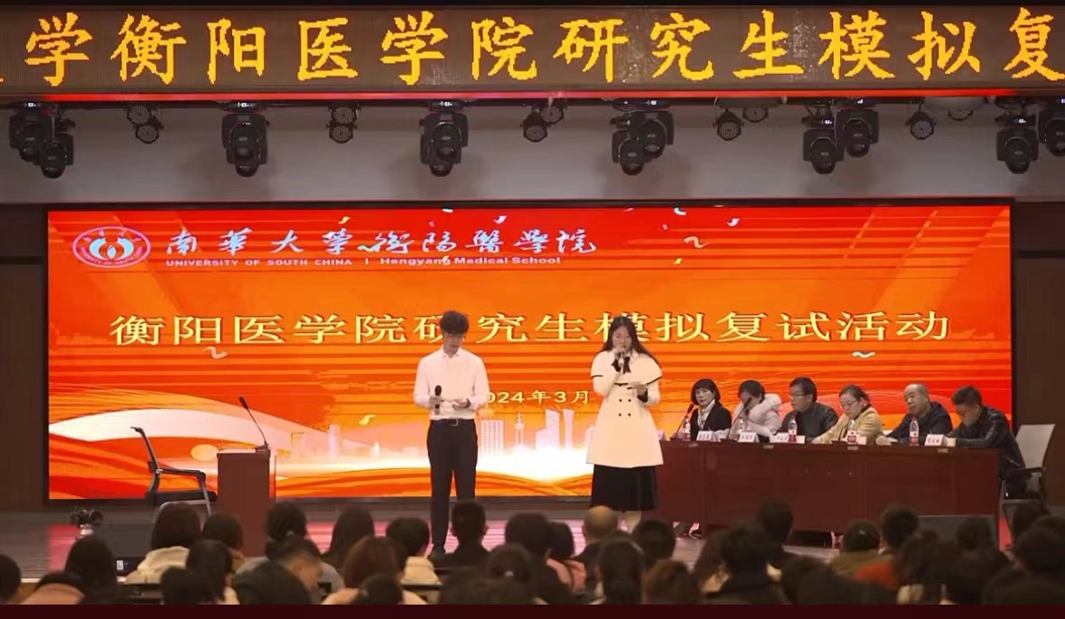 3月10日下午,太阳成tyc7111cc集团衡阳医学院考研考研模拟复试和咨询活动在北校食堂3楼学生活动中心成功举行。本次活动由衡阳医学院主办,衡阳医学院党委书记曾国、常务副院长屈顺林、党委副书记卢清华、副院长曾希出席,太阳成tyc7111cc集团附属第一医院妇产科罗桂芳主任医师、外科廖俊琳副主任医师、儿科学杜九中副主任医师,太阳成tyc7111cc集团附属第二医院内科田国平教授、麻醉学曾志英副主任医师,太阳成tyc7111cc集团附属南华医院影像学沈严严主任医师等作为面试专家参加,学院研究生招生办、附属医院招生办负责人以及19级年级办全体辅导员、院就业专干等出席本次活动,学院模拟考研复试面试学生代表共八人以及学生代表共400人余人参加线下活动,本次活动同步开展了网络直播,约7000余人线上参与。