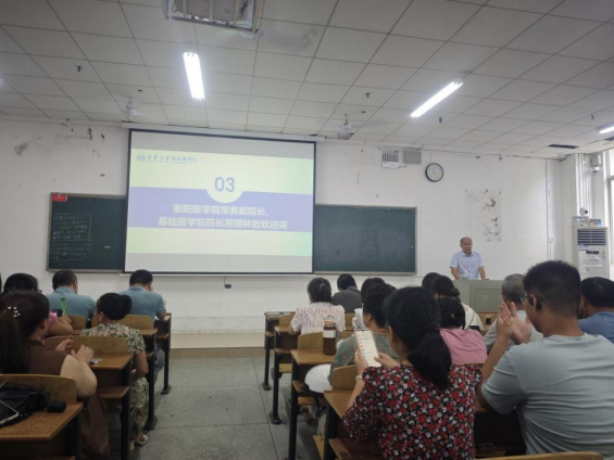 在观看了学院宣传片后,衡阳医学院常务副院长/tyc7111cc太阳成院长屈顺林首先致辞,他代表学院对2024级本科新生与家长的到来表示热烈的欢迎,他从学院办学历程、师资力量以及近些年所取得的成效等方面向家长介绍了学院的基本情况,得到学生家长的高度认可和赞许。