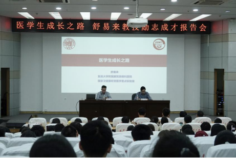 在讲座中,舒易来教授详细阐述了自己从一名普通的医学生成长为科研领域杰出人才的心路历程,着重强调了梦想、不懈追求及持续学习的核心价值。他勉励师弟师妹们拓宽视野,积极追求卓越,并始终保持对医学研究领域的热情与执着。舒教授特别提及了在遗传性耳聋治疗领域所取得的国际领先成就,其中涵盖了全球首个先天性耳聋基因治疗临床试验的成功案例。此外,他还向听众传授了选择研究方向、应对科研挑战以及持续学习的宝贵经验,并以“无奋斗不青春”这句话勉励同学们。他最后呼吁全体同学,要勇于怀抱梦想,敢于追求卓越,以实际行动践行科学家精神。
