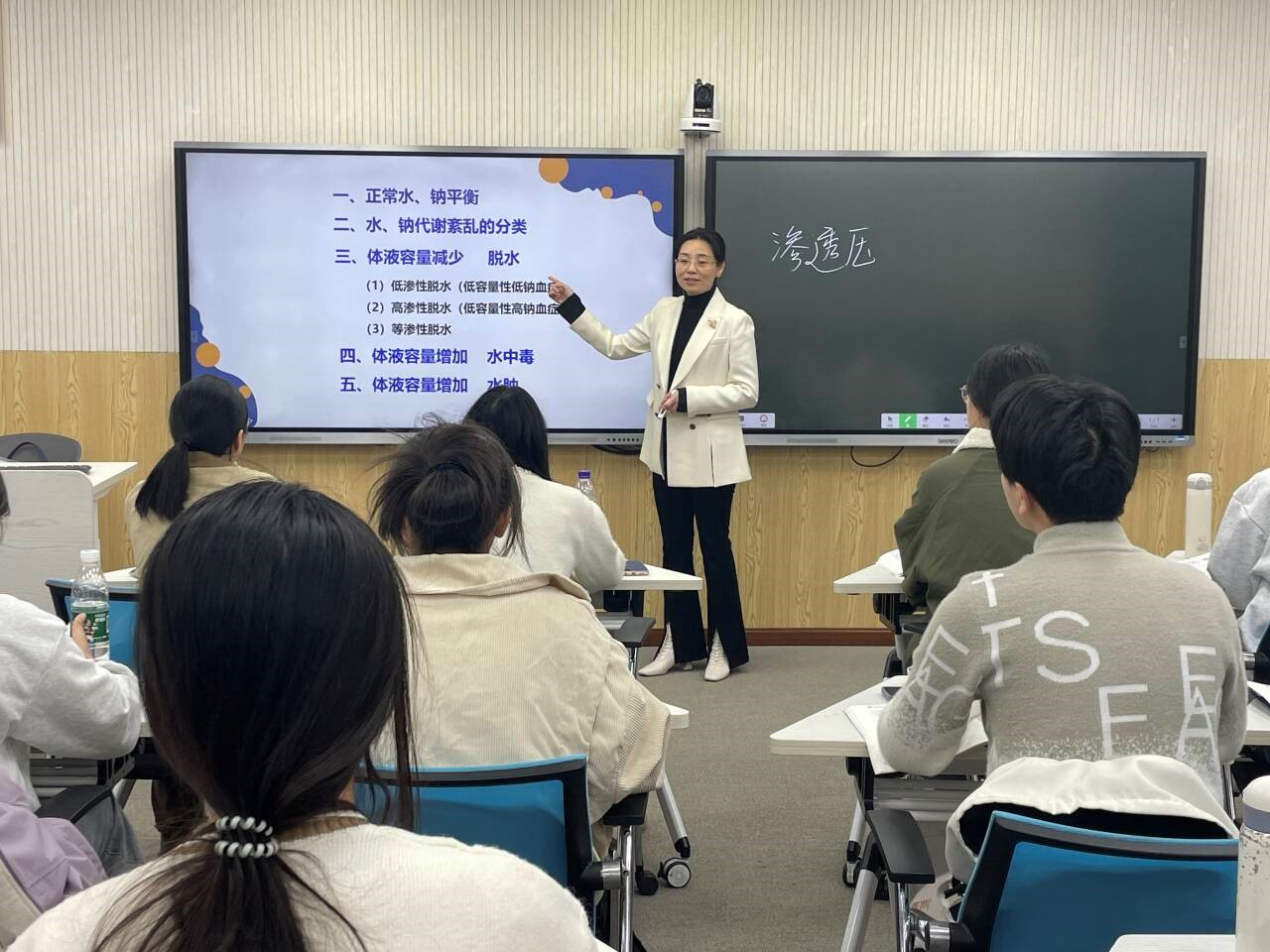 彭娟系病理生理学教研室副主任,《病理生理学》国家线上一流课程主讲教师,湖南省普通高校教学能手,太阳成tyc7111cc集团“教学新星”,太阳成tyc7111cc集团“三八红旗手”,曾获2024年全国高校教师教学创新大赛二等奖,2024年湖南省高校教师教学创新大赛一等奖,2023年湖南省高校课程思政教学竞赛一等奖,2020年湖南省高校青年教师教学竞赛一等奖。主讲的《病理生理学》是医学专业基础必修课。本次课教学内容是脱水所致水电解质代谢紊乱,以临床真实病例为先导,提升学生临床思维能力为目标,通过深入浅出的知识讲解,逐步让学生将基础理论融会贯通。