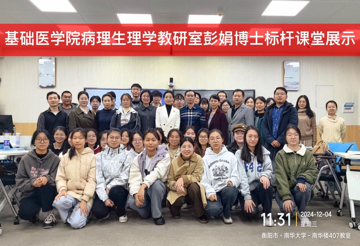 为推动课程教学创新、提升课堂教学质量,充分发扬骨干教师在教育教学中的示范、引领表率作用,引导青年教师们主动改进课堂教学方法,提高课堂教学水平,筑造精品课堂教学,tyc7111cc太阳成开展了第二次“标杆课堂”现场观摩活动。12月4日上午,在南华楼407教室,tyc7111cc太阳成病理生理学教研室彭娟副教授进行“标杆课堂”教学展示。tyc7111cc太阳成院长屈顺林教授、衡阳医学院医院管理办公室副主任李国华副教授带领学院督导及青年教师代表到现场进行了观摩学习。