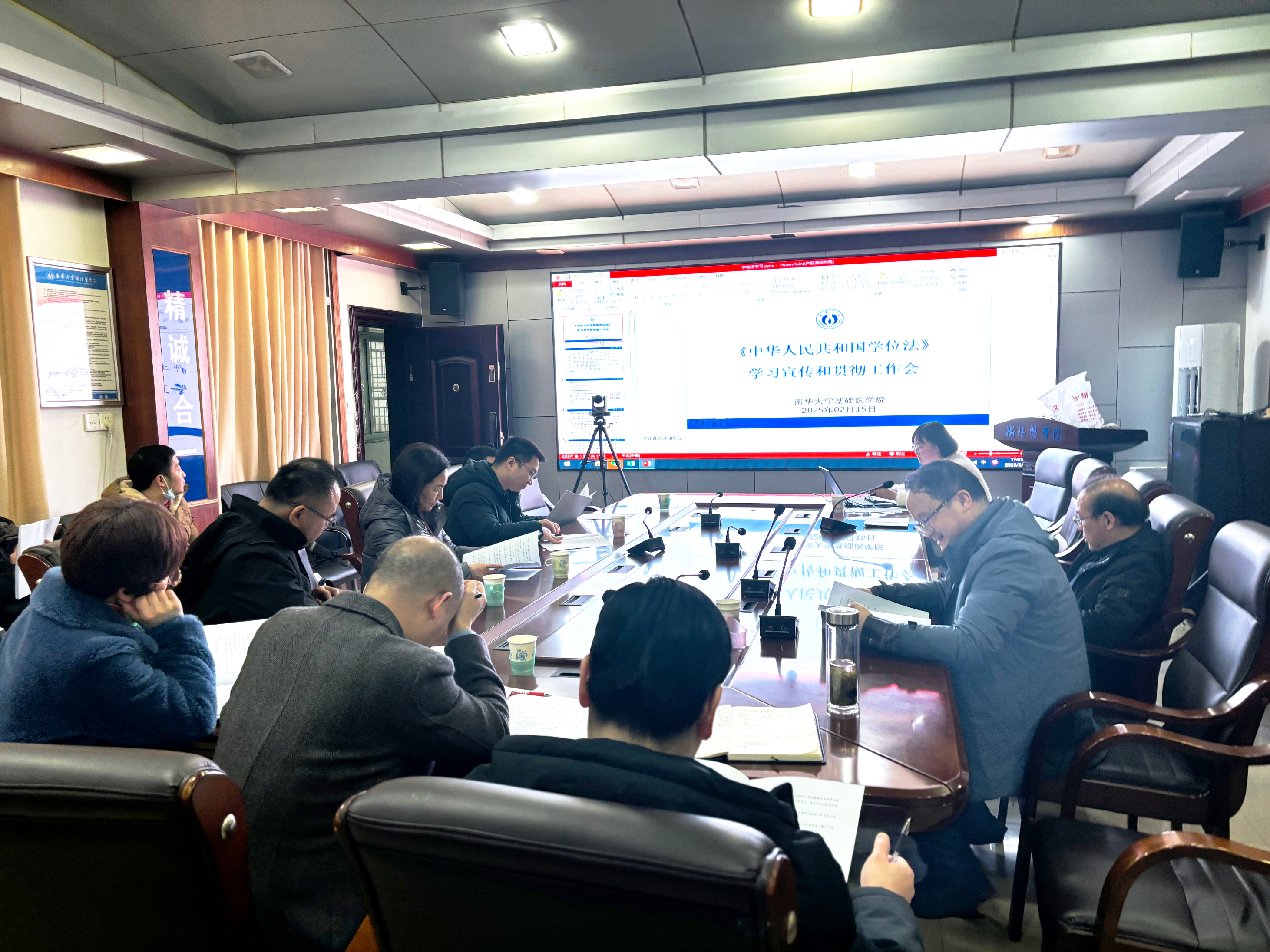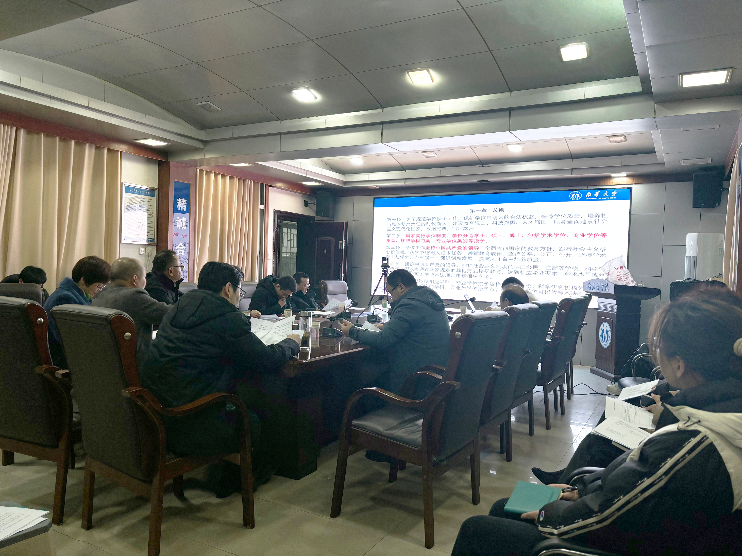 近日,tyc7111cc太阳成积极组织各学科教师及学位评定分委员会成员专题学习《中华人民共和国学位法》(以下简称《学位法》)。会议由学院院长屈顺林主持,党委书记曾国、副院长张晓东等院领导班子成员及部分教职工共40余人参加。
