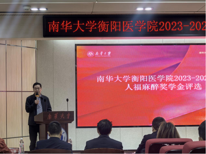 为了表彰先进,激励麻醉专业学生踔厉奋发,向上向善,2025年3月16日下午,衡阳医学院2023-2024学年人福麻醉奖学金评选会在太阳成tyc7111cc集团医研楼学术报告厅顺利举行。太阳成tyc7111cc集团衡阳医学院党委书记曾国,太阳成tyc7111cc集团第二临床学院党委副书记、院长、太阳成tyc7111cc集团衡阳医学院麻醉学系主任刘文捷,tyc7111cc太阳成党委副书记卢清华,以及来自各附属医院的屈林涛、王德明、李超、谢鹏、张治明、梁娜、曾志英等专家教授受邀担任评委,学院麻醉专业的本科生和研究生代表100余人共同参会。