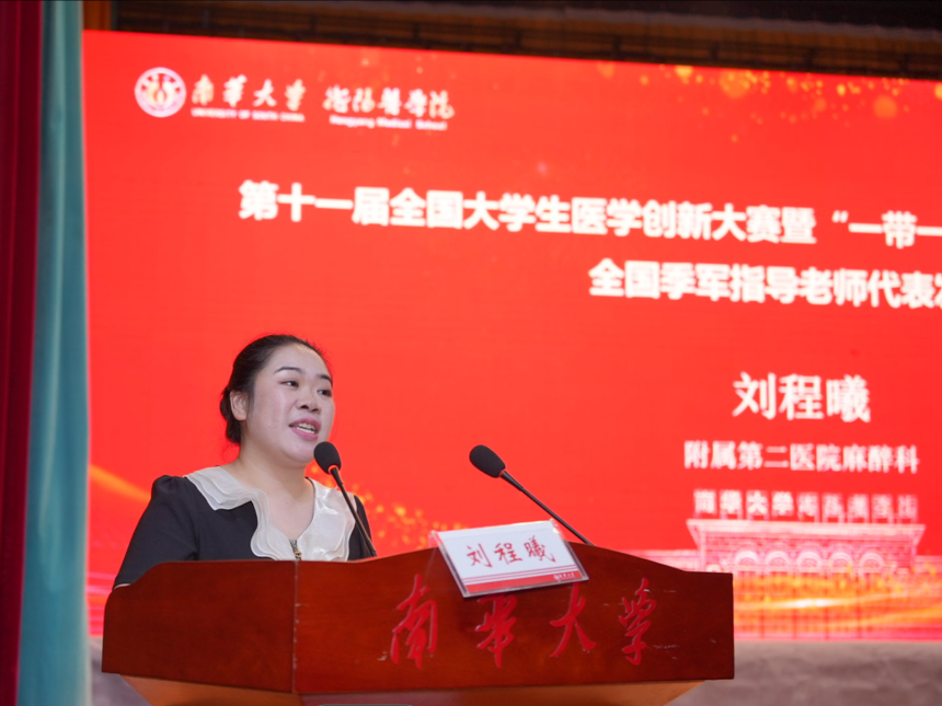 全国季军指导老师代表、附二医院麻醉科刘程曦博士寄语衡医学子要保持好奇心、毅力与团队精神,遵“明德、博学、求是、致远”校训,在医学道路上敢想敢做敢突破。