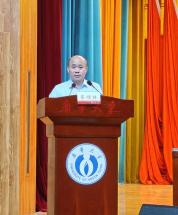 议程第五项,衡阳医学院常务副院长屈顺林总结讲话,他以三个关键词为新生指明成长方向,寄予殷切期望。屈院长向我们提出了三个关键词。第一个关键词:扎根。基础研究的同学,需要耐心地去探求分子和细胞的奥秘,临床医学的同学要保持对病人的关怀和医学敏锐度。第二个关键词:突破。如今医学领域正在经历前所未有的变革,精准医疗、大数据分析、基因编辑等等,这意味着我们需要在创新中走出自己的一条路,医学的创新来自于对未攻克疾病的追求。第三个关键词:仁心,教育广大要扎根基层、坚守临床,敬畏生命,浇灌希望,坚守医者底色。