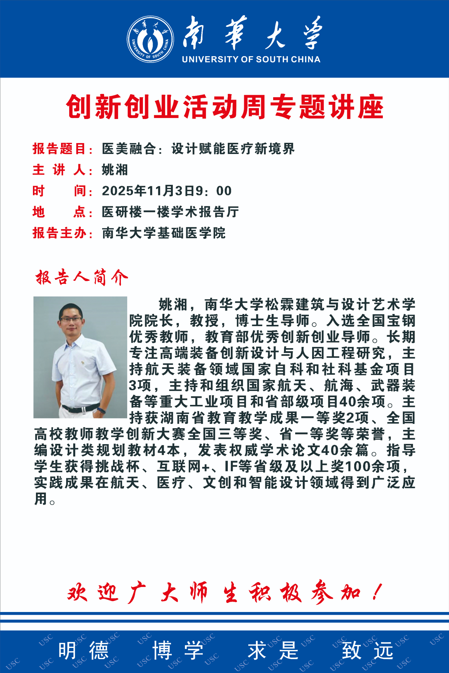 上一条:创新创业活动周专题讲座 | 李熠:中国国际大学生创新大赛解读及参赛准备 下一条:关于提升衡阳医学院创新创业工作成效的若干措施(试行)