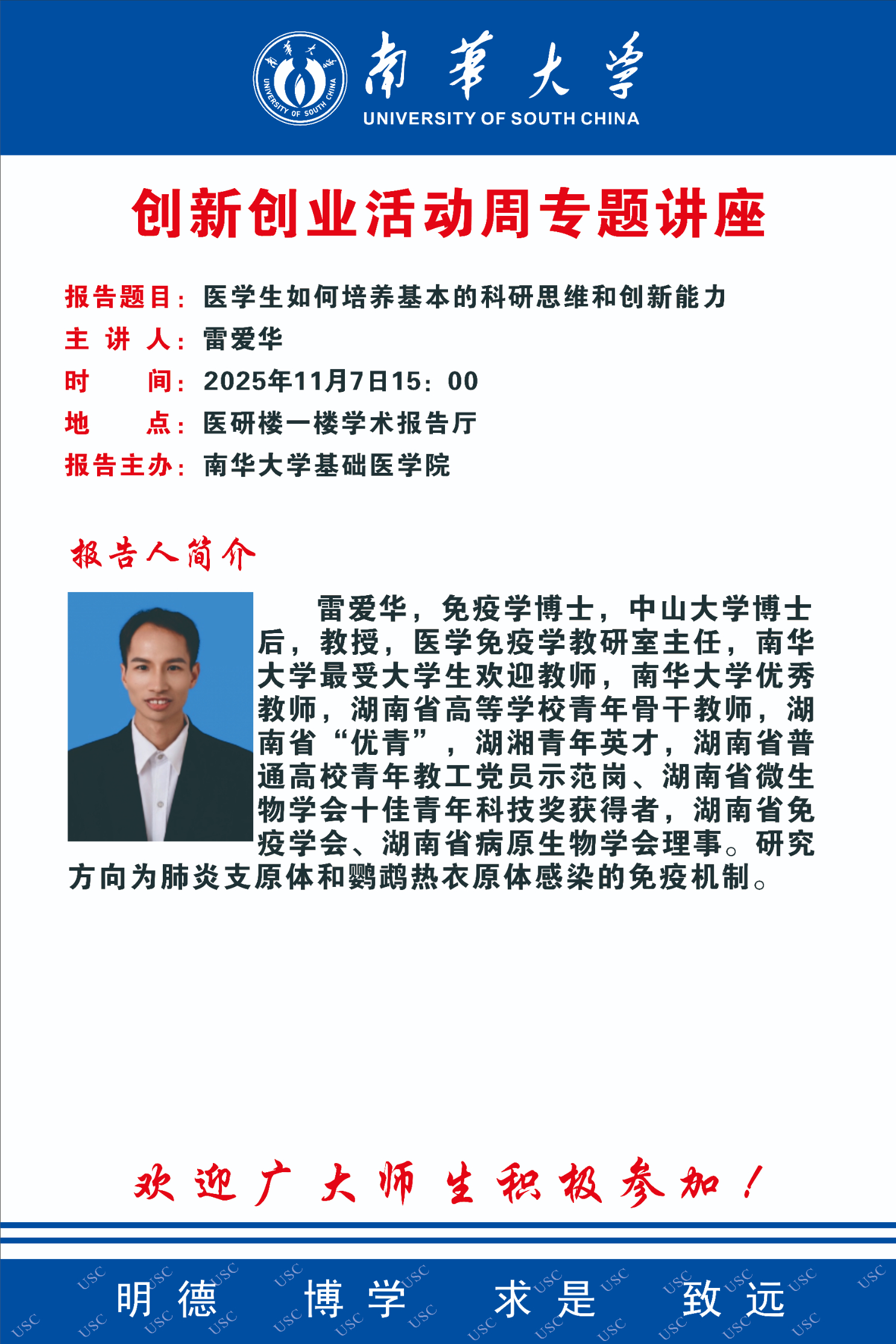 下一条:创新创业活动周专题讲座 | 张多来:南华精神与衡医“80”现象