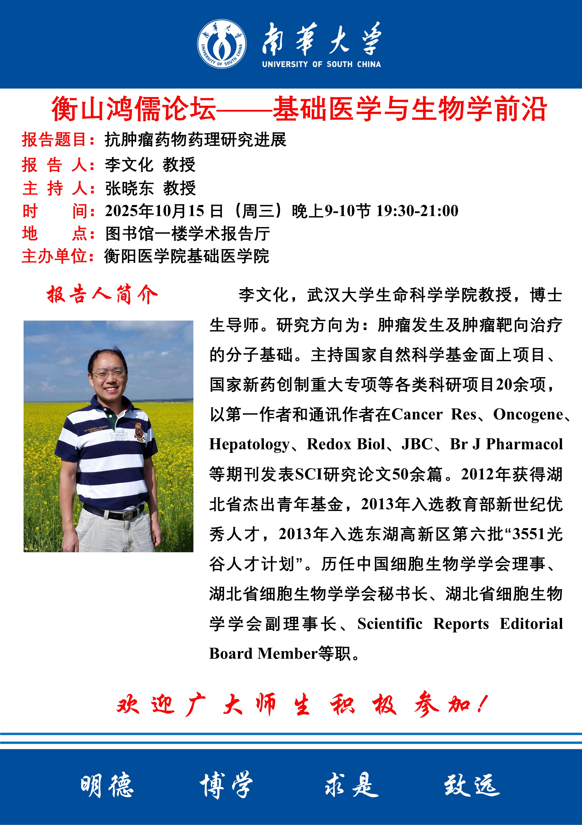上一条:衡山鸿儒论坛 | 钱贻崧教授:血管内皮炎症的调控机制和干预策略 下一条:科研讲座|杨四军研究员、李朝阳教授学术报告