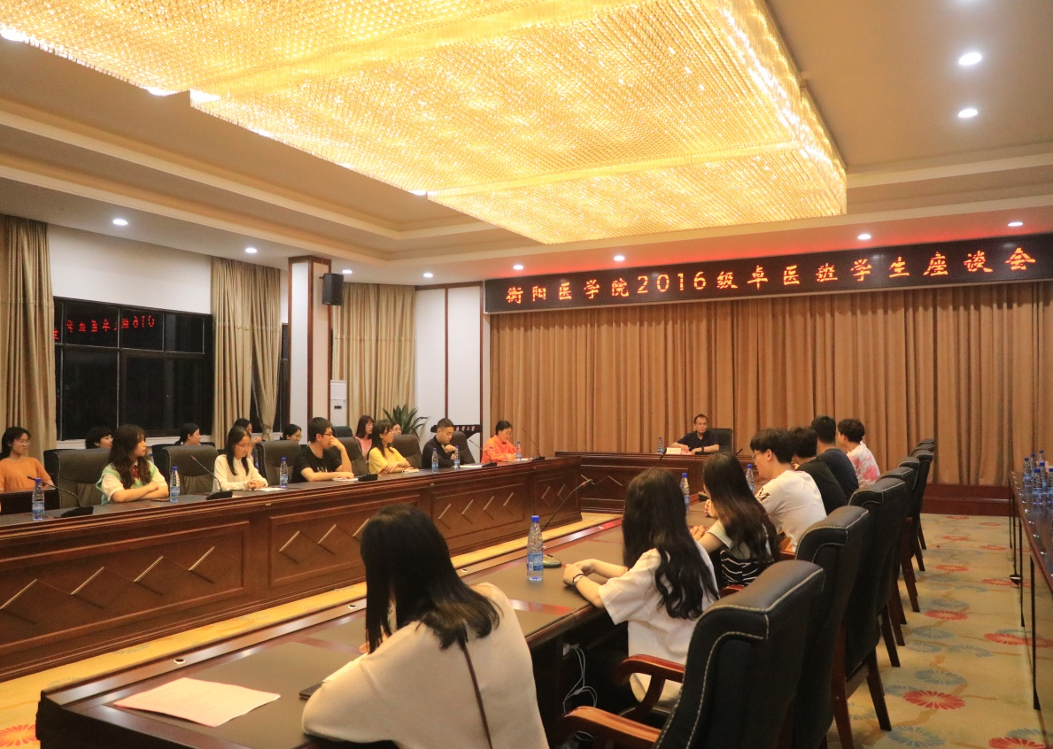 6月1日19:30,太阳成tyc7111cc集团衡阳医学院2016级卓医班同学座谈会在校第一办公楼视频会议室举行。校长张灼华与全体2016级卓医班学生面对面座谈交流,衡阳医学院党委常务副书记陈端阳,衡阳医学院党委副书记何战胜,辅导员徐婵娟、蒋芳香、李杨出席座谈会。会议由陈端阳主持。