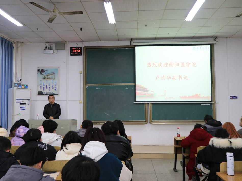 卢清华副书记对如何开展好毕业最后一学期学生工作提出了几点意见:一是希望全体同学调整好心态,强调同学们目前还是在校生,要严格遵守包括请假制度、宿舍管理制度等学校各项规章制度与行为准则。二是强调同学们要守住安全底线。包括在实习、找工作和复试中的交通安全、食品安全、用电安全、住宿安全、聚会安全、防诈骗、防传销,尤其要加强心理健康教育工作,关注特殊群体学生,发现问题及时报告,守住安全底线。三是做好学生档案材料归档,党员、团员材料的整理及组织关系的转接,强调这与同学们的未来发展息息相关,呼吁大家多加重视。针对考研与就业工作,在介绍就业形势后,他希望考研的同学们放平心态,“勿以分数论英雄”,能去攻读硕士的无论是专硕还是学硕都要尽量抓住机会去;他鼓励同学们积极到基层医院就业,特别是本学期的第一次春季双选会大家尽量都参加;他也号召积极应征入伍投身国防事业,为国家的安全、人民的幸福奉献青春力量。最后,卢清华副书记祝愿大家“顺顺利利完成学业,开开心心度过最后一个学期,高高兴兴开启新的征程”,并寄予了“如今聚是一团火,未来散是满天星”的殷切期待与美好展望。