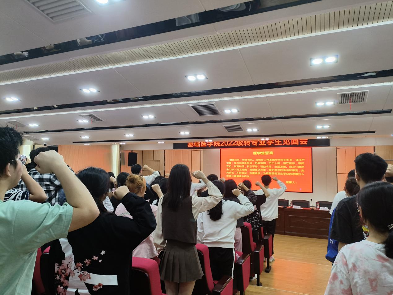接着,由“湖南好人”、校“最美大学生”获得者、18级临床专业严露同学领誓,全体转专业同学进行了庄严的医学生誓词宣誓,帮助同学们在心中种下了一颗“执医为民、济世苍生”的种子。