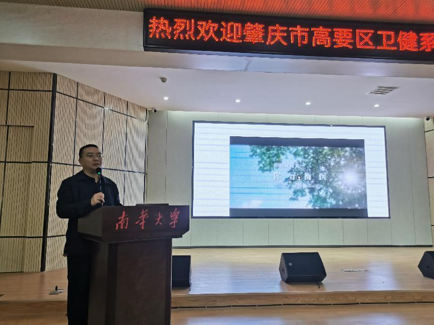 在观看高要区卫健系统以及衡阳医学院宣传片后,衡阳医学院党委副书记卢清华致欢迎辞,他首先对高要区卫健系统领导来我校进行校园招聘表示欢迎,并介绍了衡阳医学院近年来的发展近况及教育教学成就,寄语毕业生科学评价、理性选择,做出最适合自己的就业选择。
