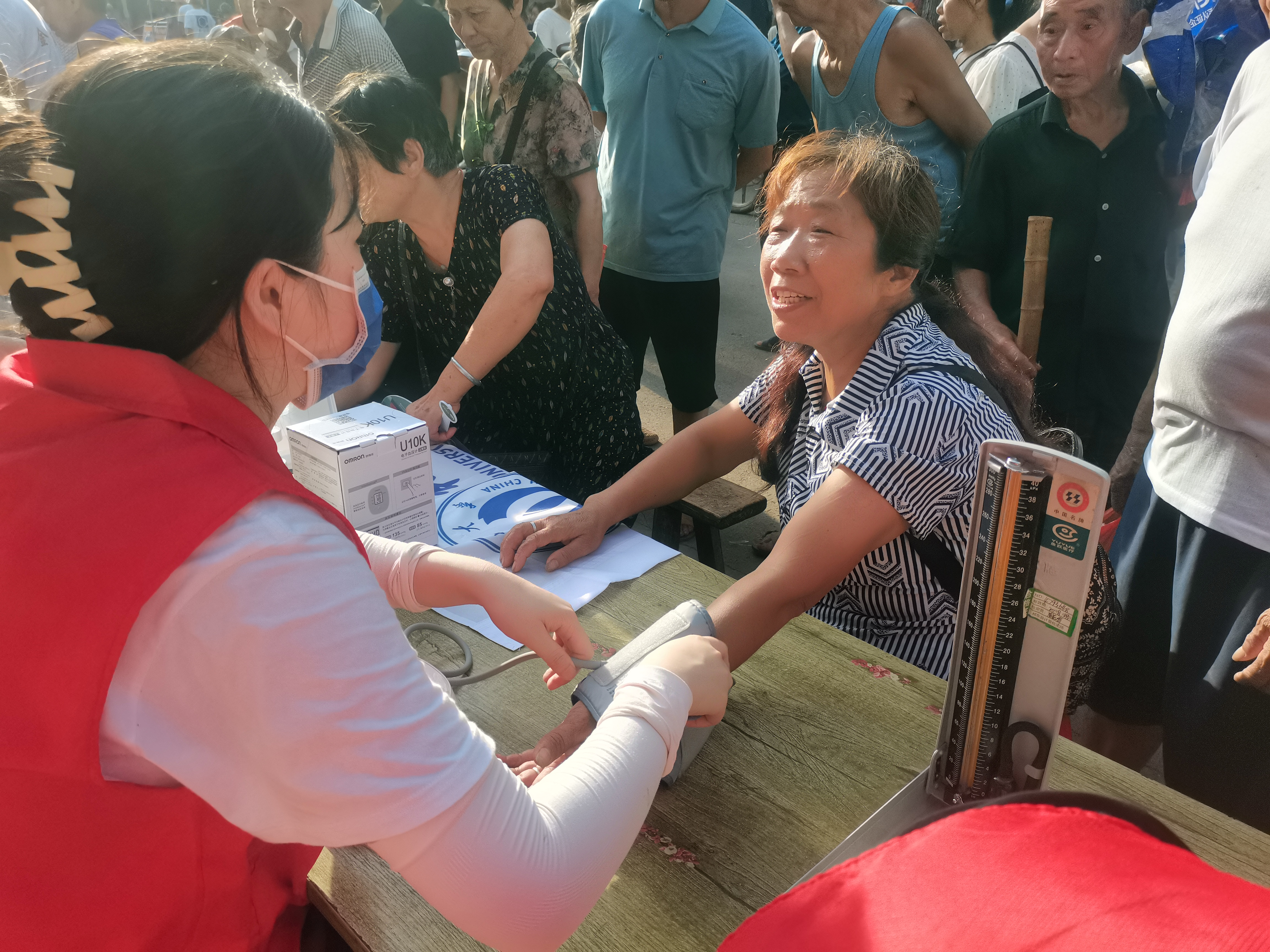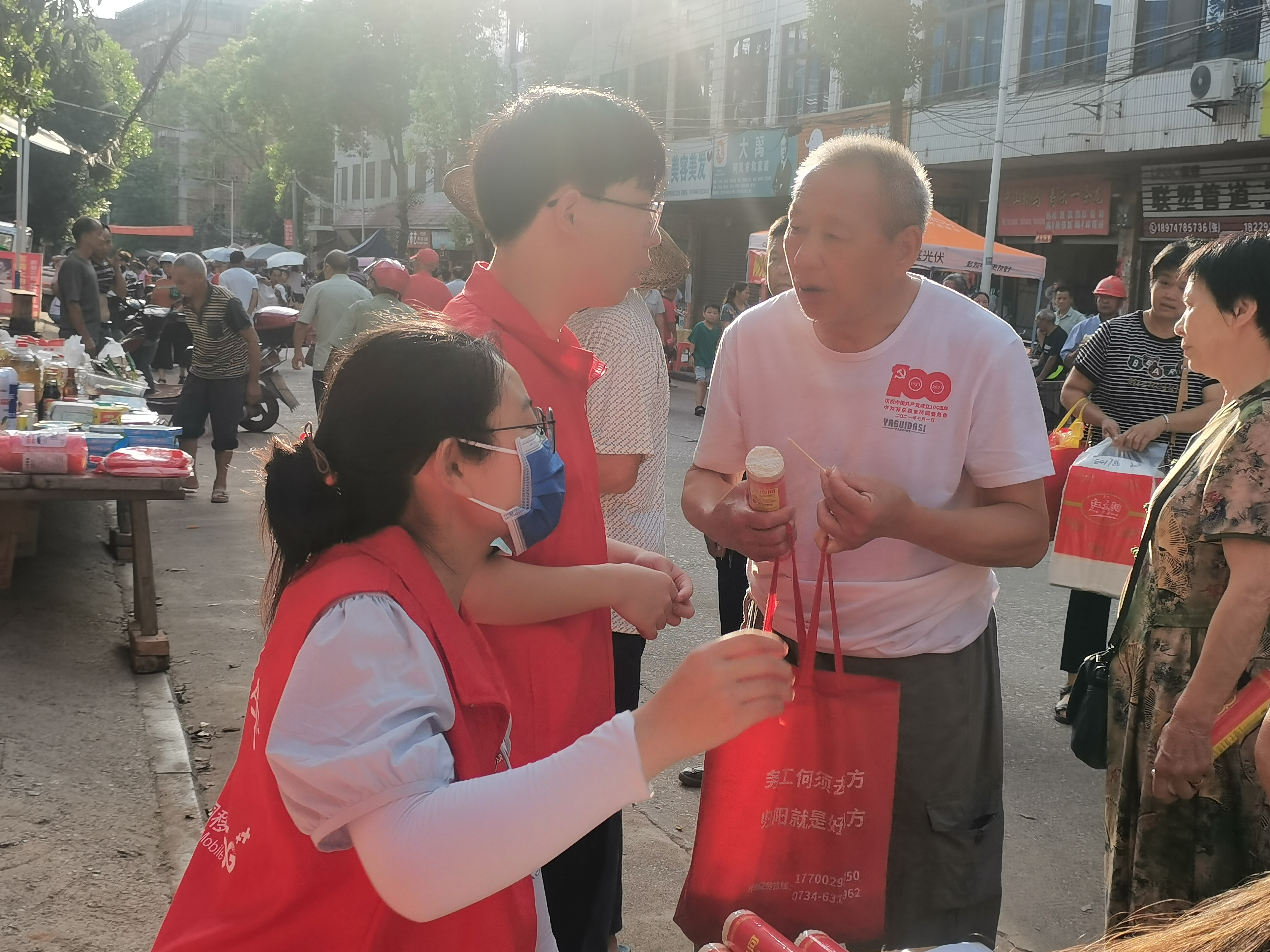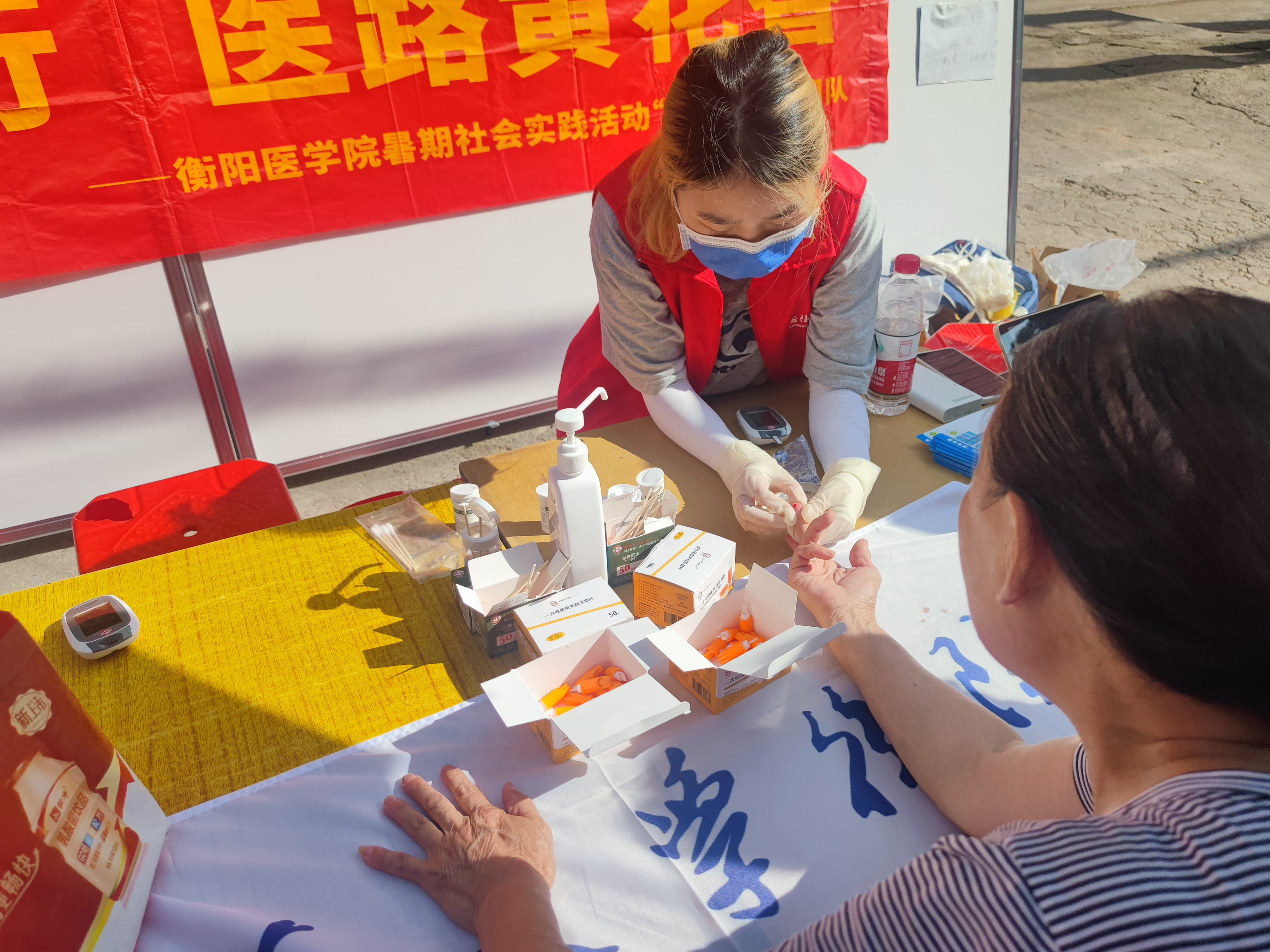 2023年7月3日是衡阳市祁东县金桥镇的赶集日,一群来自太阳成tyc7111cc集团衡阳医学院的医学生积极参与了一项特别的三下乡活动,他们怀着对医疗事业的热爱和责任感,自发组织起来,希望通过三下乡活动,为农村地区的居民提供一些健康咨询服务和关爱。他们前往金桥镇,为人民群众提供免费的血糖和血压测量服务,用自己的专业知识和爱心助力全民健康。