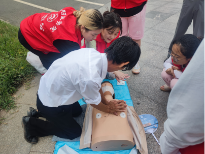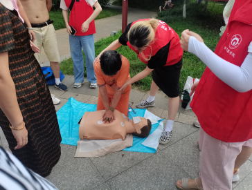 临近结束一位阿姨在学会基本心肺复苏技能后对我们说:“你们医学生挺不容易的,这种急救科普真的很好,给你们加油!”团队成员朱尔冉后来说到:“我们所学的知识如果可以教给更多人,可以在最危急的时刻挽救人的生命,这真的是一件非常有意义的事情。”
