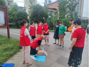 活动中实践团成员彭钰婷为广场群众进行了有关心肺复苏的演练,并向群众科普心肺复苏知识,细心讲解抢救过程中需要注意的事项,并强调了动作规范的重要性,只有有效且正确的按压才能更好地为病人提供帮助,为救护的到来提供宝贵时间。