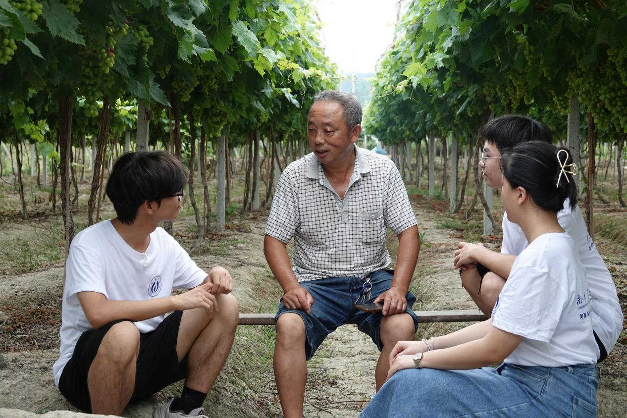 杨建忠在葡萄园里与成员分享自己的党员故事
