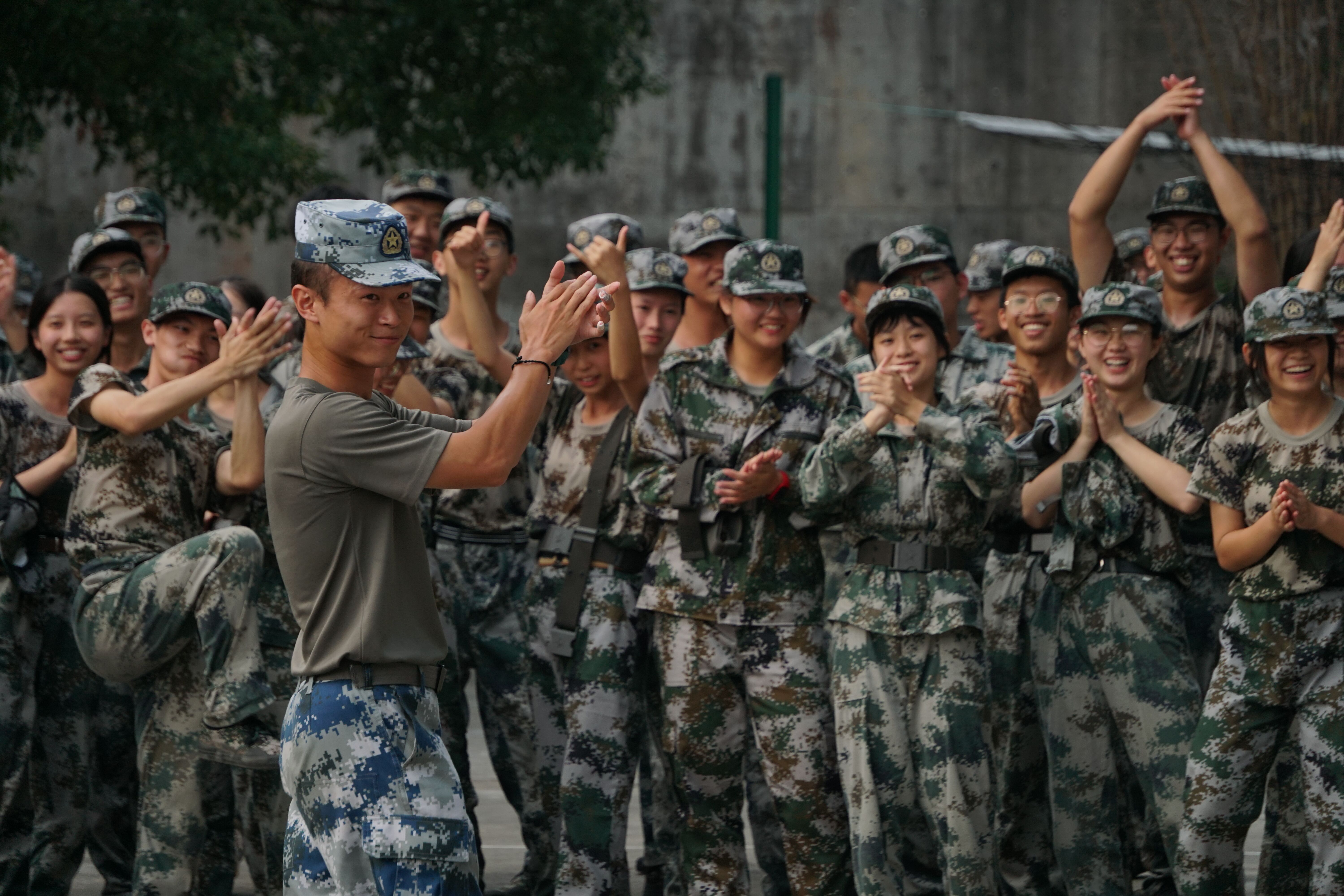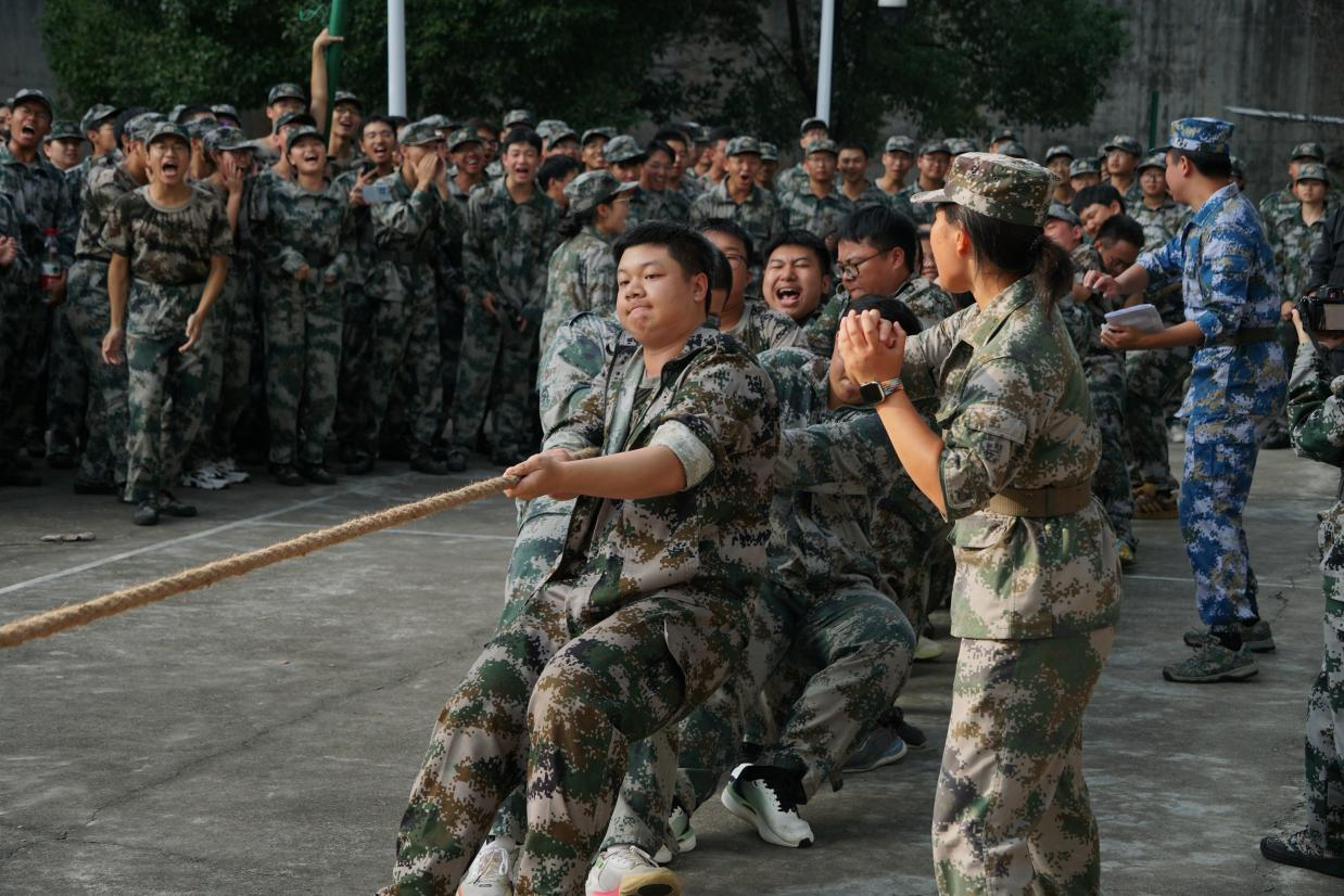 “预备——开始!”一声响亮的长哨刺破晴空,双方拔河队员刹那间身体绷紧,如一张张拉满的弓。学生们的助威声一浪高过一浪,教官们也喊破了嗓,只见队员们牙关紧咬,额头青筋暴起,肌肉紧绷,让在场的每一个人都血脉贲张;深深嵌进麻绳的掌纹与挥洒于赛场的汗水一起,彰显着青年人的激情和拼搏。不论结果如何,友谊在这一刻胜过了竞争,晴天碧空见证青春飞扬。