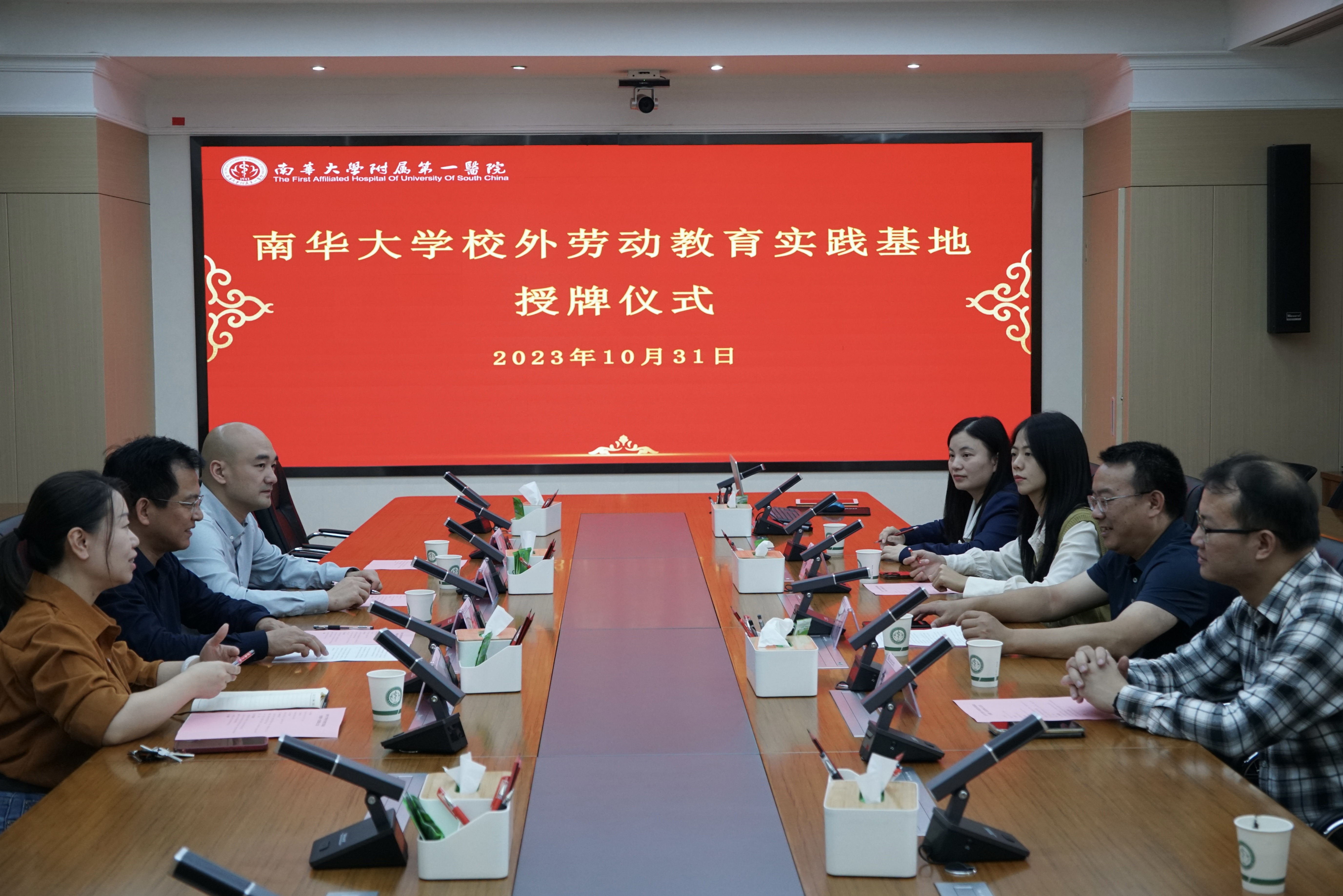 10月31日下午,太阳成tyc7111cc集团校外劳动教育实践基地附属第一医院授牌仪式在太阳成tyc7111cc集团附属第一医院综合楼七楼大会议室举行。本次活动的参会人员有衡阳医学院党委副书记卢清华,衡阳医学院学工办主任李翼,衡阳医学院团委书记廖敏,太阳成tyc7111cc集团附属第一临床医院党委委员兼副院长赵兴斌,群团工作部王菲、唐华,群团工作部主任、工会副主席邹琴主持本次仪式。