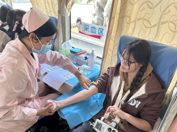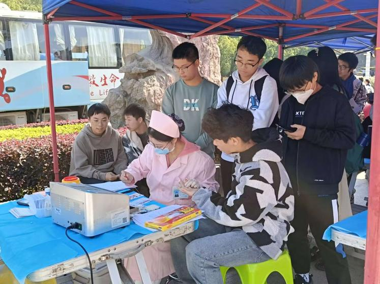 红色的横幅给人以热情,和煦的阳光予人以温暖,一位位朝气蓬勃的青年学子撸起袖子,加入志愿献血的人群中。这是2023级新生第一次献血,第一次过大学生节,也是第一次履行救死扶伤的责任责任。他们在志愿者的引导下进行资料登记、测量血压、血液检验,检验合格后,献血正式开始。