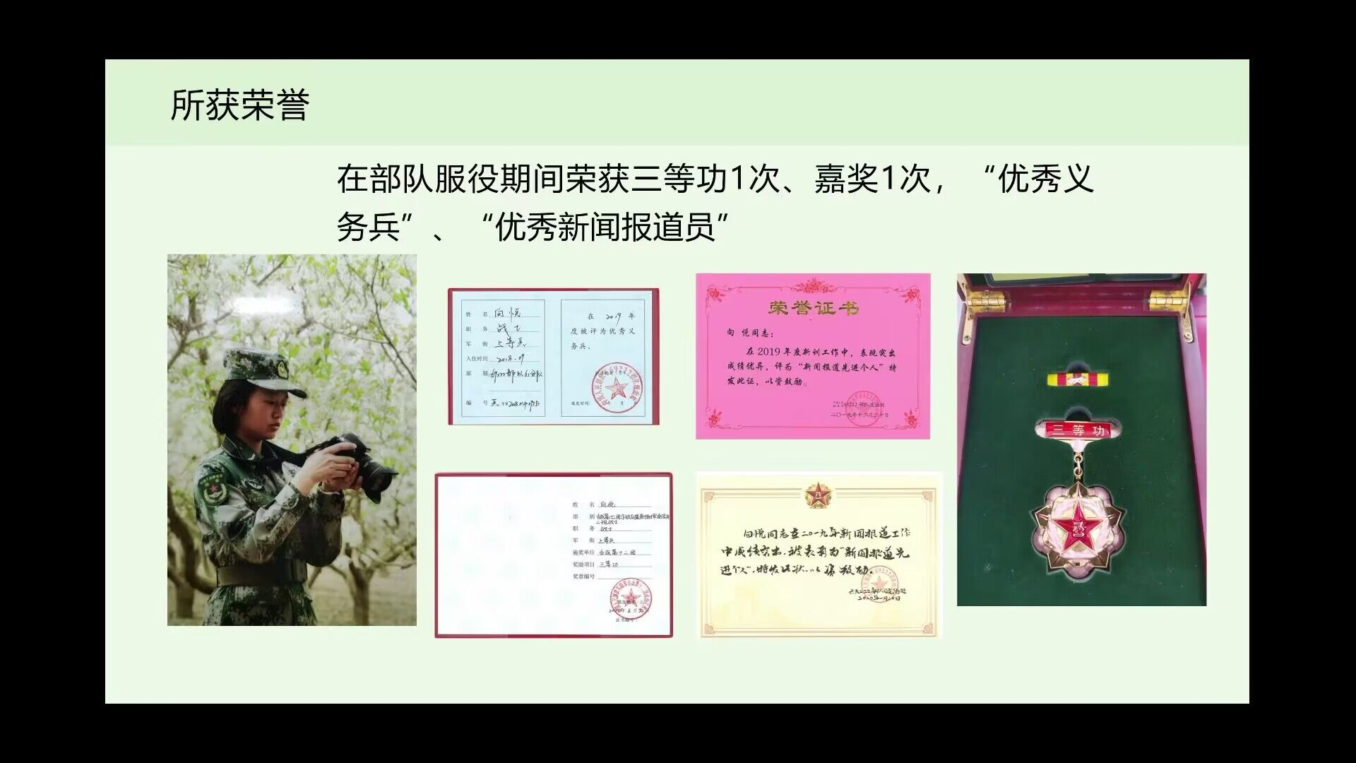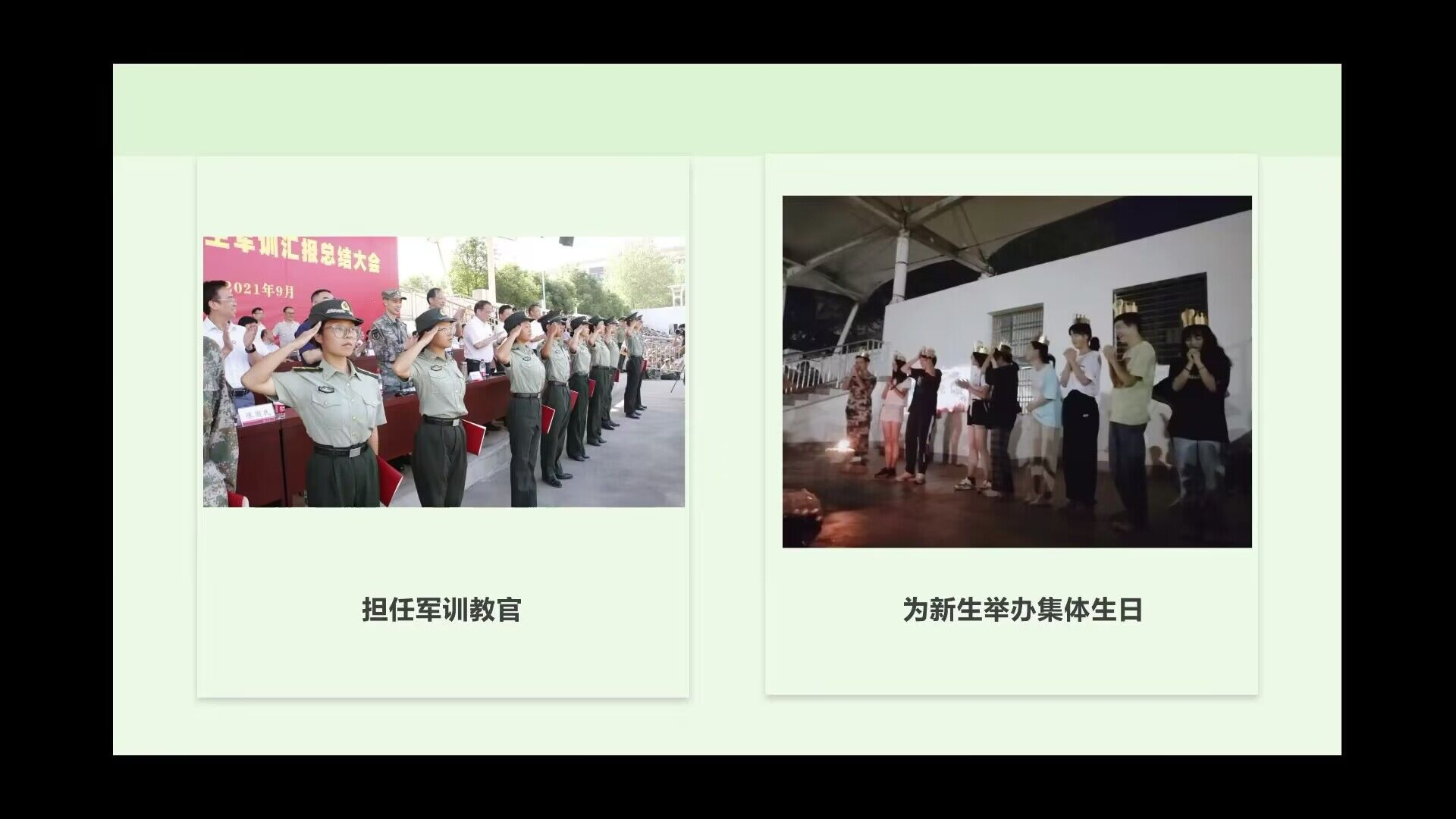携笔从戎,投身抗疫,志愿服务......向悦学姐的大学生活充实而有意义。从国防战地到青葱校园,她恒葆有退伍不褪色的精神,始终将时代的责任担在肩头。在这次短短的分享会中,她用自己的经历拨开了学弟学妹心中的雾霾,也指点了前进的方向。