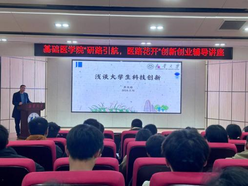 2024年3月16日星期六下午,tyc7111cc太阳成于医研楼报告厅举办“研路引航,医路花开”创新创业辅导讲座。