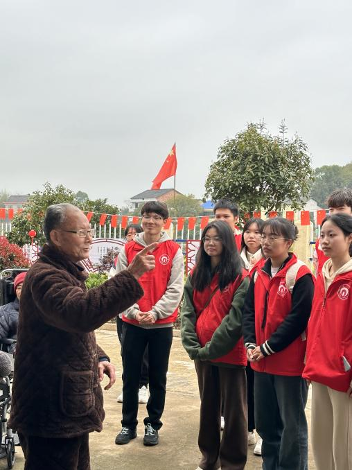 志愿者们来到敬老院,与老人们亲切谈心,关心老人的身体情况,来自附属医院的研究生志愿者们贴心的帮老⼈们测量⾎压,告知老⼈的健康状况,并给出了一些健康生活的小建议,让青年志愿服务切实走到老年人的身边。
