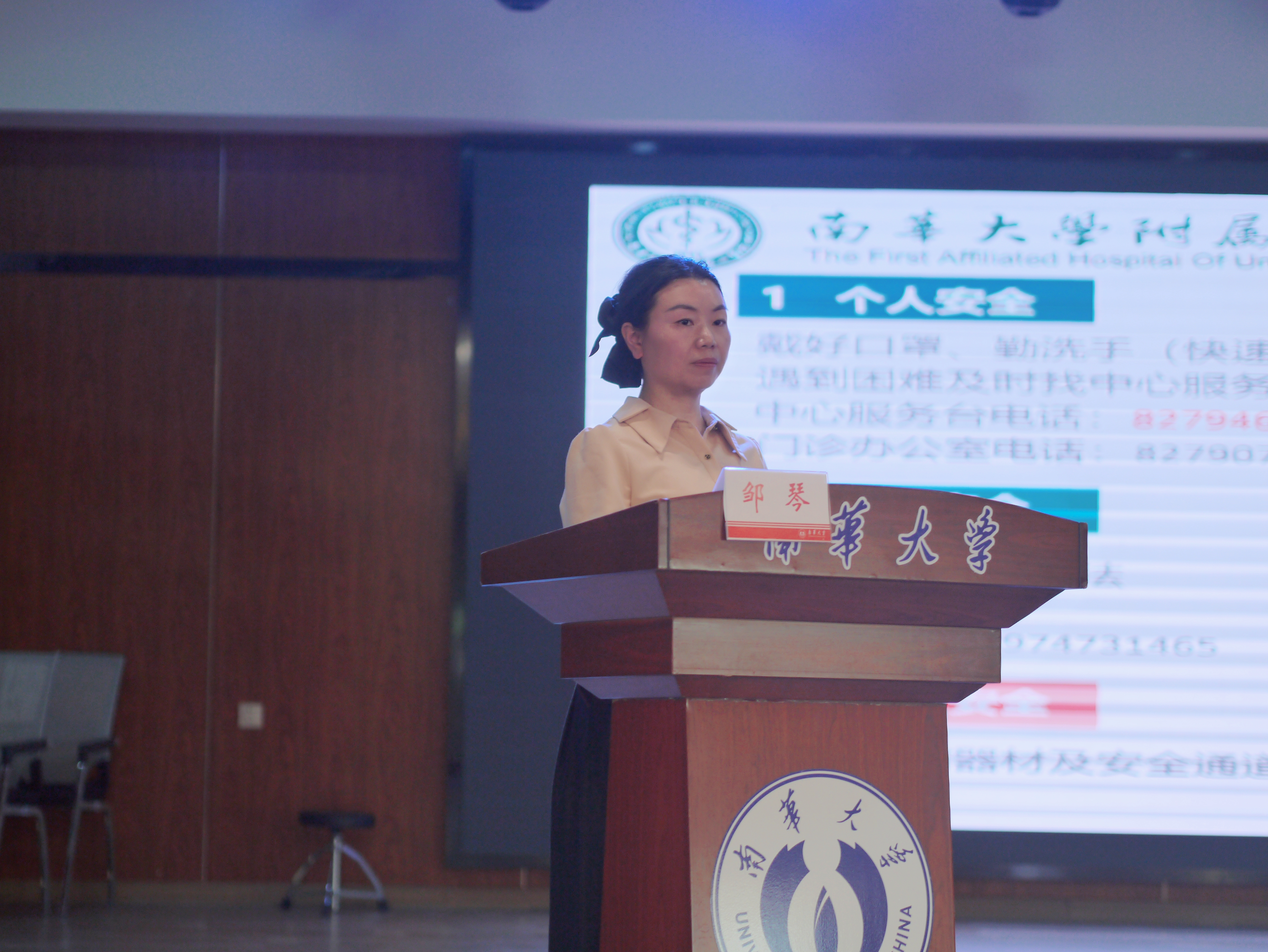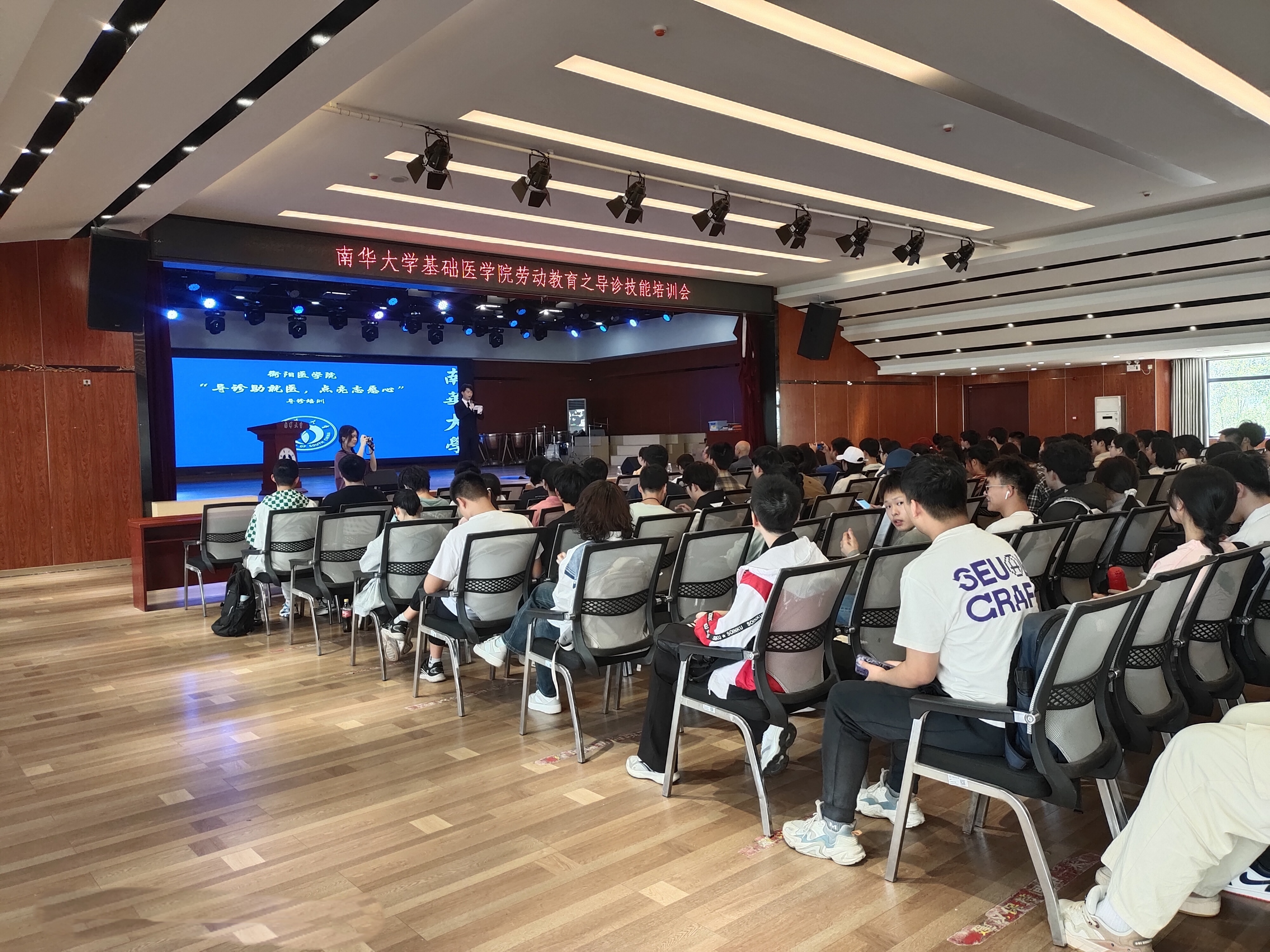 会议第一项,由卢清华书记致开场词,书记首先对此次活动的举办表示热烈的祝贺,并向南华附一医院的几位老师表示了衷心的感谢,随后,书记强调了劳动教育对大学生的重要性,并认可了培训内容的优质性,其包括了CPR等急救操作的学习,除颤仪的使用等等。