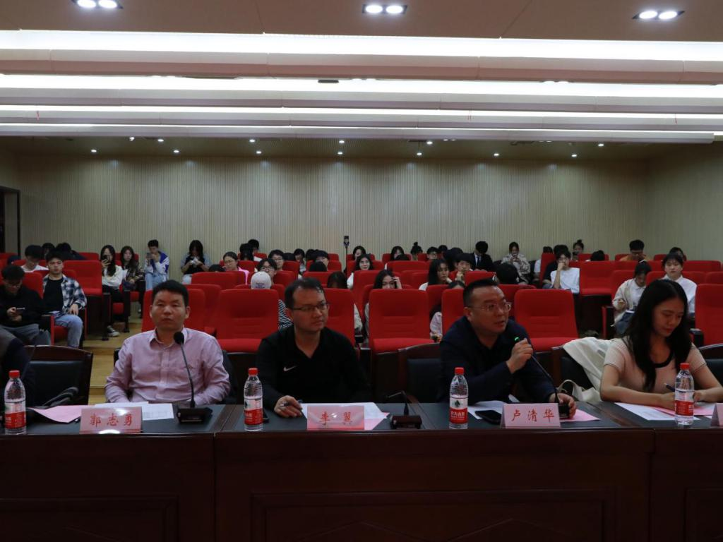 早在下午两点三十分,观众选手皆已准备就绪,随着国歌的音乐停歇,主持人上台向大家介绍本次大赛的评委老师们,他们包括tyc7111cc太阳成党委副书记卢清华、学工办主任李翼、团委书记廖敏及全体辅导员老师。