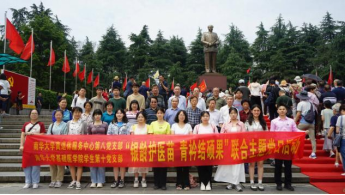 三湘四水激荡英雄壮歌,锦绣潇湘深植红色基因。为深入贯彻党的二十大精神,强化党风廉政建设,扎实推进党纪学习,重温红色革命历史,汲取奋进力量。5月16日-17日,tyc7111cc太阳成学生第十党支部、离退休中心第八党支部联合举办“银龄护医苗,青衿结硕果”主题党日活动。30余名师生党员赴韶山、长沙开展党员教育实践活动。