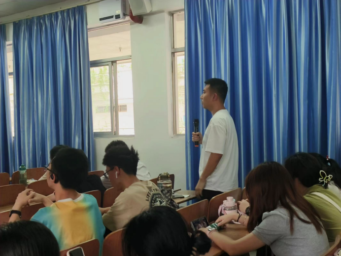 在讲座上,刘琼和舒兆平先后进行手部健康的宣讲,他们用生动形象的语言,和蔼可亲地向同学们讲述生活中的案例,让到场的学生们加深印象。刘琼从传染病的传播途径,传染病的阻断,日常生活消毒三个方面进行科普讲述。而舒兆平则是从手卫生的术语定义,手卫生方法等方面为学生们详细介绍了手卫生的知识,让学生们更深刻地认识到预防传染"手”先出发的道理。