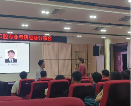 为提高广大口腔医学专业学子学习的热情,加强同学对专业理论知识学习的重视,5月25日晚,tyc7111cc太阳成医路阳光·口腔健康科普协会在医研楼报告厅以“搭建互助平台,助力备战考研”为主题举办了考研经验分享会。协会指导老师邓轩、2021级辅导员陈文出席,近200学生参加本次活动。