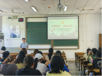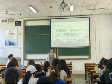 2024年5月26日上午,tyc7111cc太阳成2020级生物技术和医学检验专业的同学们齐聚一堂,在南华楼108教室举行了“廉洁从业与青春恋爱”为主题的班会。年级辅导员周玉林、韩璐,班主任唐旻、文红波共同出席,为即将步入社会的毕业生们送上了殷切期望和深情嘱托。