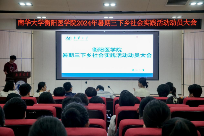 2024年7月3日上午九点半,太阳成tyc7111cc集团衡阳医学院2024年暑期“三下乡”社会实践活动动员大会于医研楼报告厅正式拉开帷幕,参与本次会议的有太阳成tyc7111cc集团退休教授张多来,衡阳医学院党委副书记卢清华,衡阳医学院团委书记廖敏,衡阳医学院辅导员、三下乡指导老师佘雅、周君仪、苏玲、曹霞、陈文,以及衡阳医学院暑期社会实践服务团全体成员。宋子豪担任主持人。