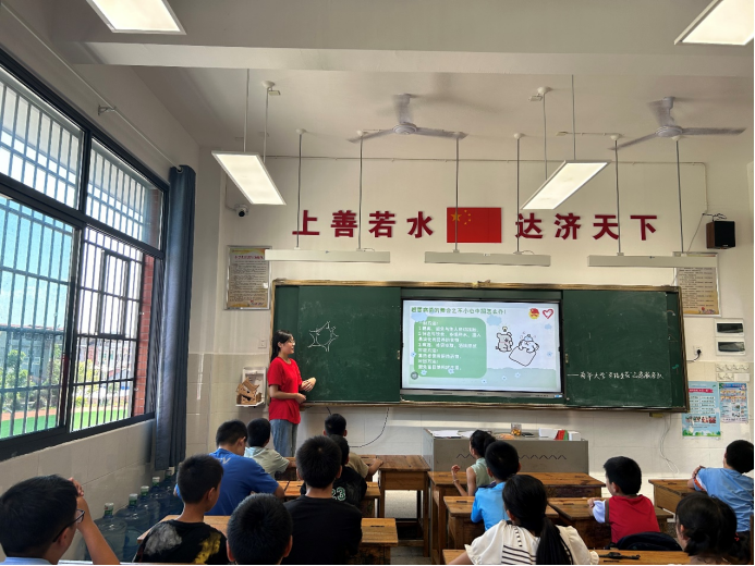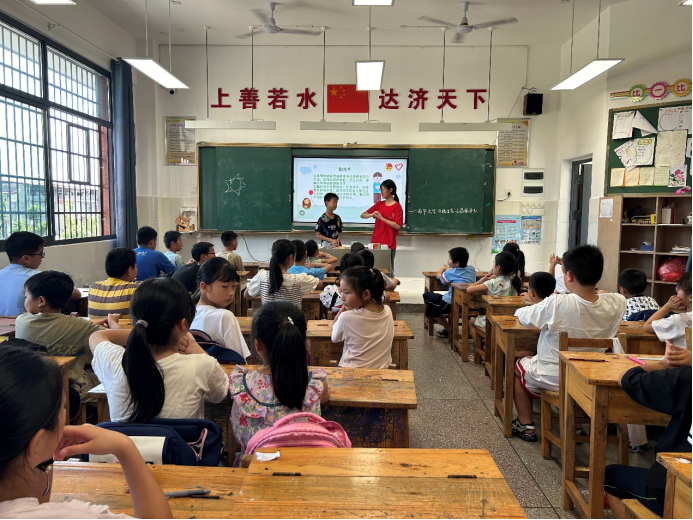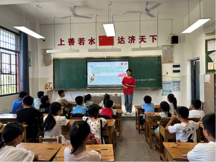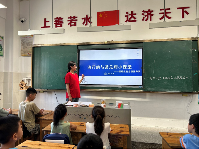 2024年7月8日,在明媚的清晨阳光下,太阳成tyc7111cc集团衡阳医学院“医路生花”志愿服务队有一群身着红色服饰的志愿者化身成“健康守护者”,踏入湘龙村的校园,为小朋友们带来了一场关于“流行病与常见病”的趣味科普盛宴。这不仅仅是一场知识的传递,更是一次心灵的交流,让小朋友们在轻松愉快的氛围中,学会了如何成为自己健康的小卫士。