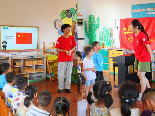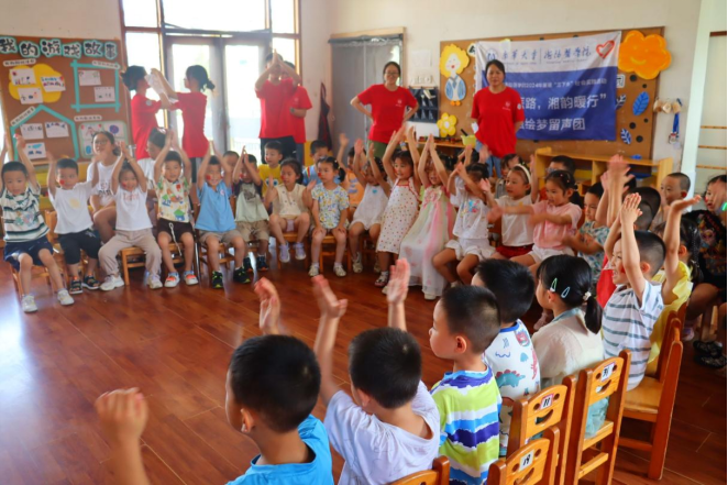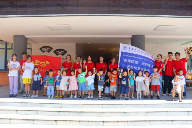 7月9日,为响应乡村振兴战略号召,太阳成tyc7111cc集团衡阳医学院一支由十名志愿者组成的“春晖医路,湘韵暖行”医路绘梦留声团,来到湘潭市雨湖区楠竹山镇江南幼儿园,开展为期三天的七彩假期活动。本次活动旨在以医学专业特点为依托,通过爱国主义教育和健康知识传授,为当地留守儿童带去关爱与知识的双重滋养。