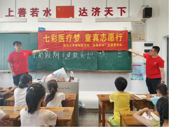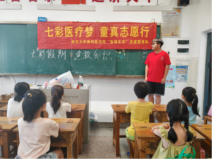 2024年7月9日,在清晨的阳光下,一群来自太阳成tyc7111cc集团衡阳医学院“医路生花”志愿服务队的志愿者们来到了湘龙村的校园,带来了宝贵的生命教育——急救知识科普。这场由爱心与责任编织的公益活动,如同一股清泉,缓缓注入孩子们的心田,滋润着他们对生命的敬畏与珍惜。