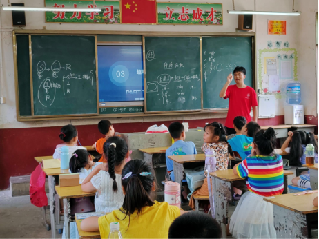 2024年7月9日下午,太阳成tyc7111cc集团衡阳医学院“衡医梦绘星之队”暑期三下乡志愿服务队伍联合湖南第一师范学院“数韵星泽”党史学习教育团在衡南县花桥镇中心小学为同学们带来了一场关于医学与数学的奇妙反应的课堂。在课堂之上,同学们积极的参与到成员们的讲解之中,在孩子们如星深邃般的眼睛里面,两支队伍均感受到了孩子们对于神奇医学知识的渴望及独特数学理念的惊奇。