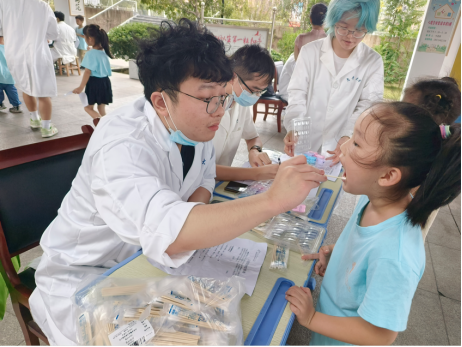 与此同时,南华附二的医生们在协会其他成员的紧密配合下,展开了专业的口腔健康检查。他们耐心细致地为每位小朋友检查了牙齿状况,特别关注了虫牙(龋齿)、系带问题以及牙齿地包天等常见儿童口腔问题,并针对发现的问题给予了初步的指导和建议,同时鼓励家长们重视孩子的口腔健康,及时就医治疗。