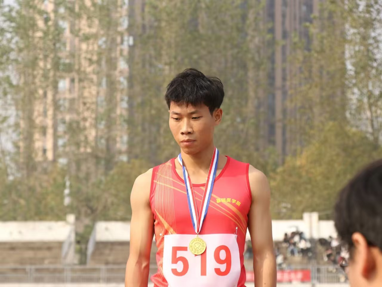 在比赛过程中,胡隆奎展现了极高的竞技水平和心理素质。他助跑稳健、起跳有力、腾空高远,动作流畅且精准,每一次都稳稳地越过横杆,赢得了现场观众的阵阵喝彩。随着比赛深入,横杆高度不断提升,挑战愈发严峻,众多参赛选手纷纷败下阵来,但胡隆奎始终保持着冷静与坚定,毫无畏惧。最终,凭借着他沉稳的心态和精湛的技术,成功夺得此次男子跳高比赛的桂冠。